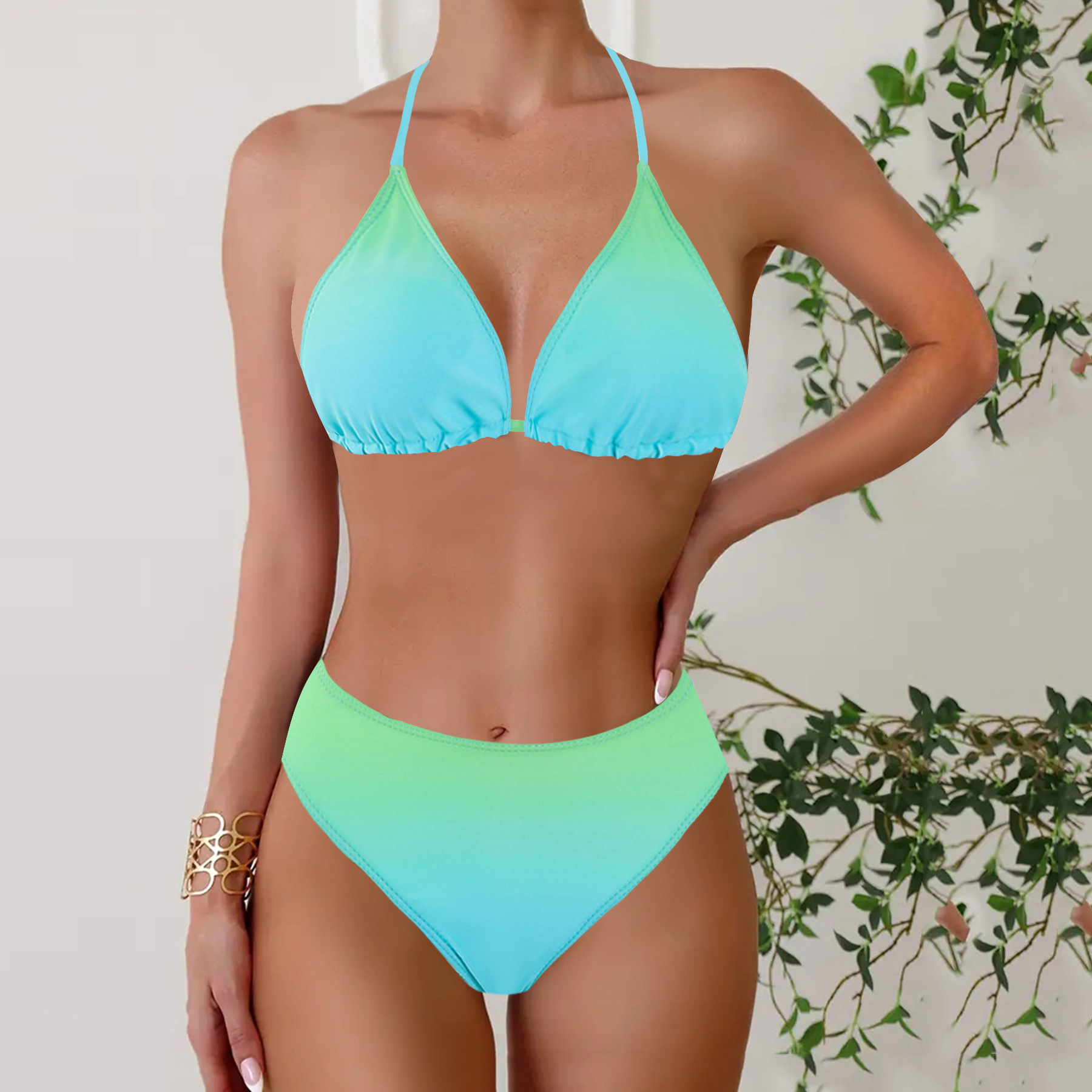 2025년 신상 컬러 프린트 수영복 아마존 유럽 및 미국 삼각 비키니 분리형 대형 비키니스토어 가기