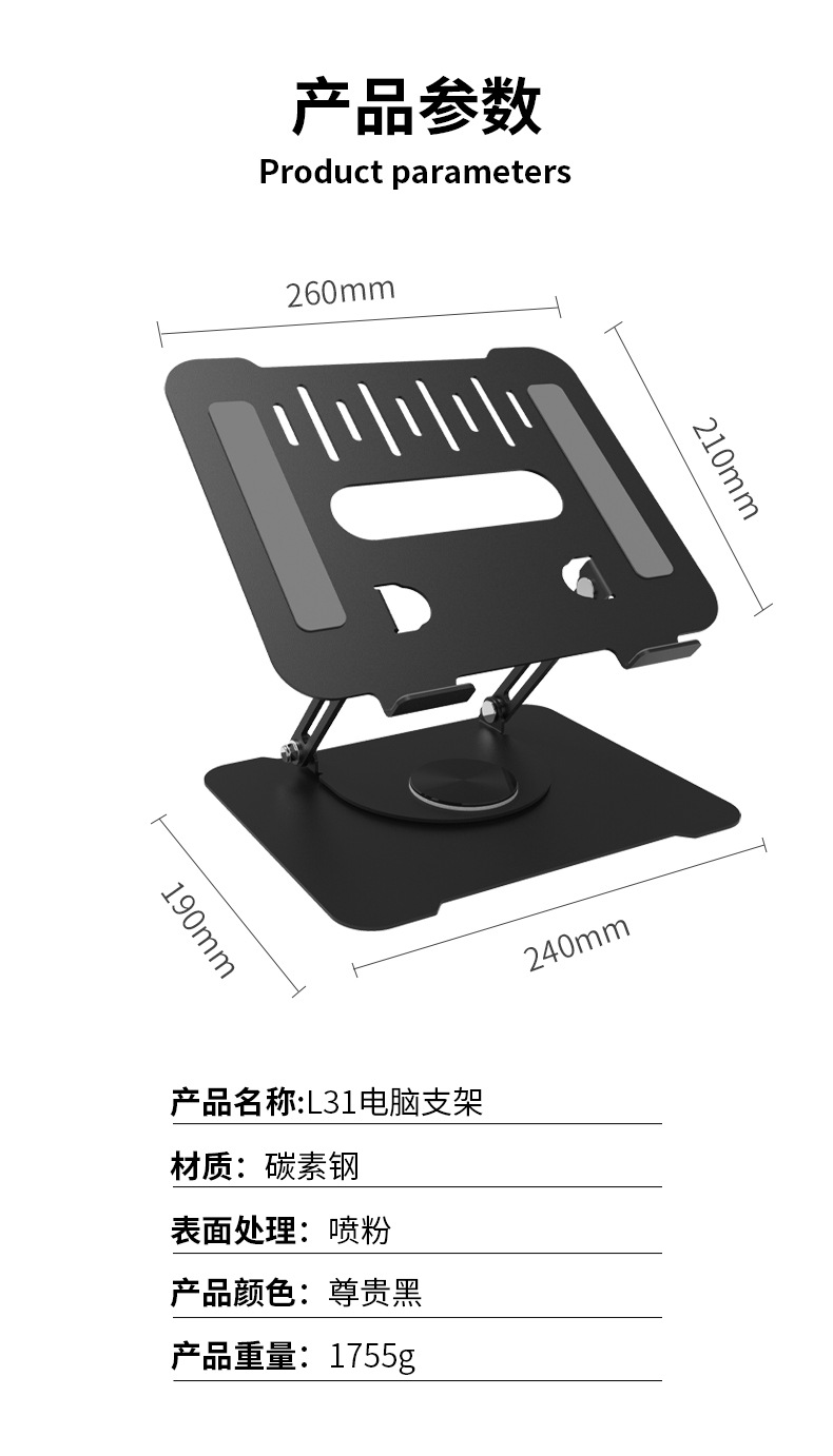 컴퓨터 냉각 랙 회전식 노트북 브래킷 리프팅 조정 태블릿 지원 프레임 금속 브래킷