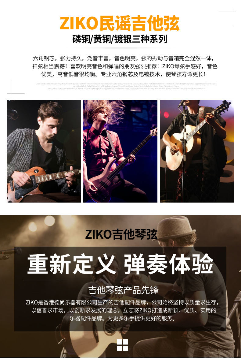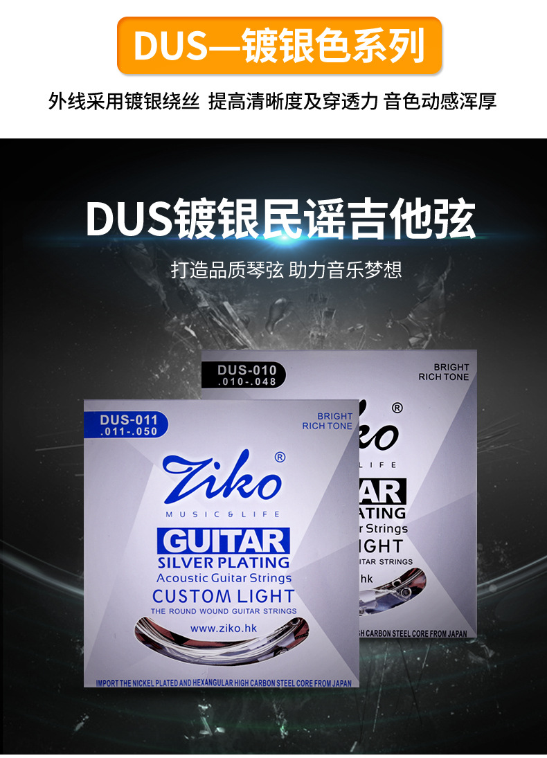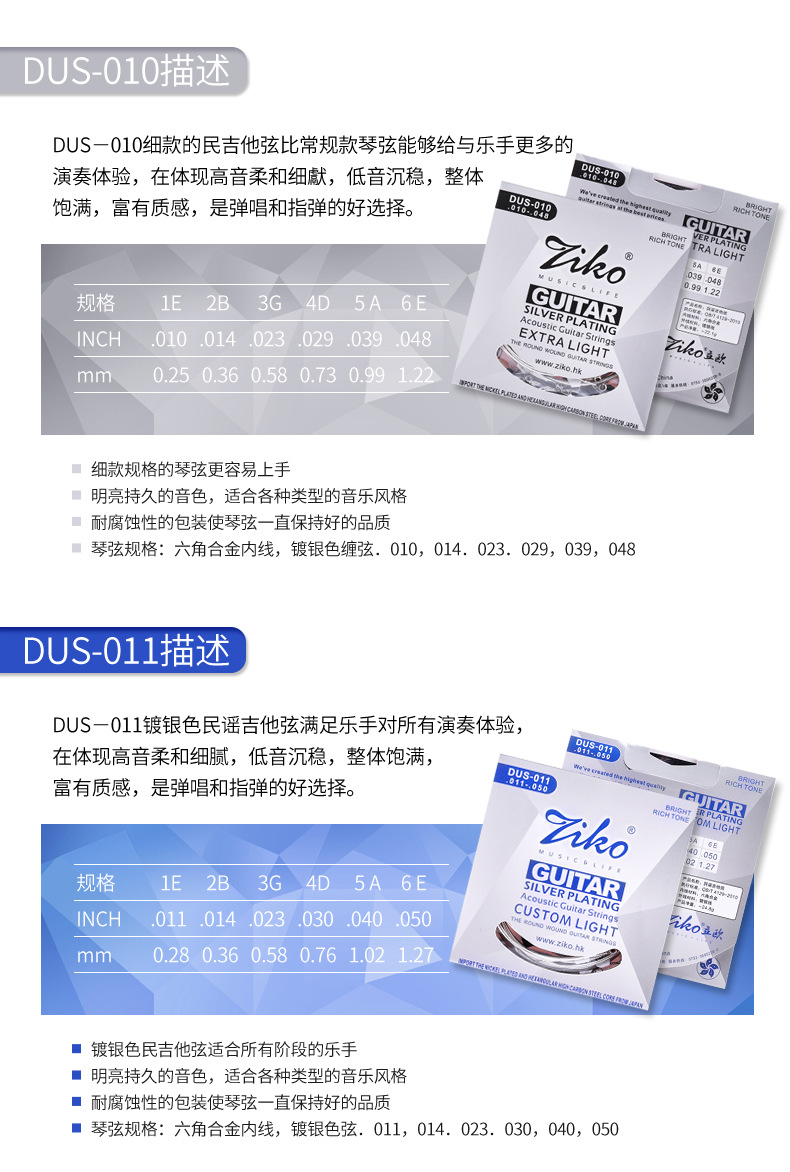 ZIKO 기타줄 세트 6개 민속 기타 및 일렉트릭 기타용 녹 방지 내구성 있는 기타줄 세트