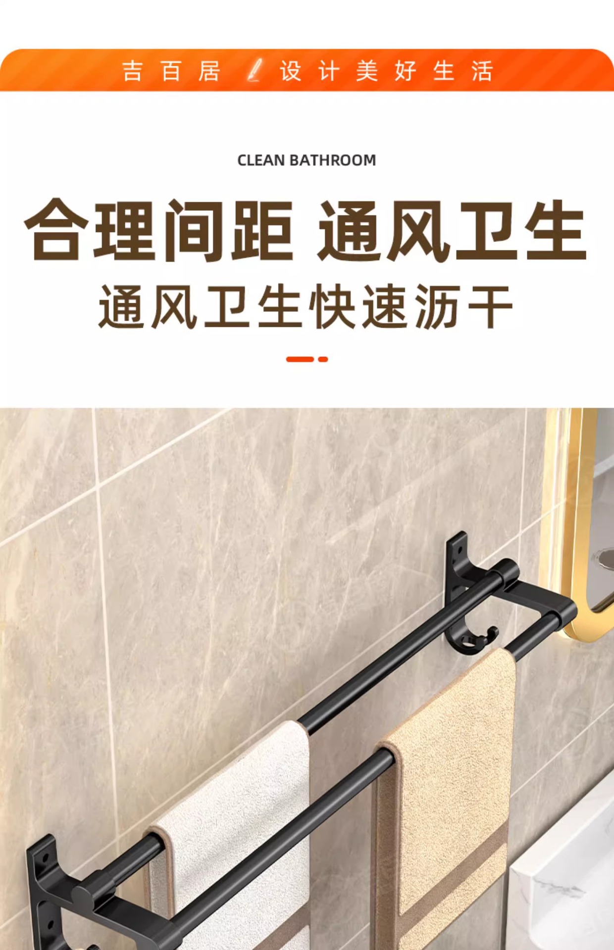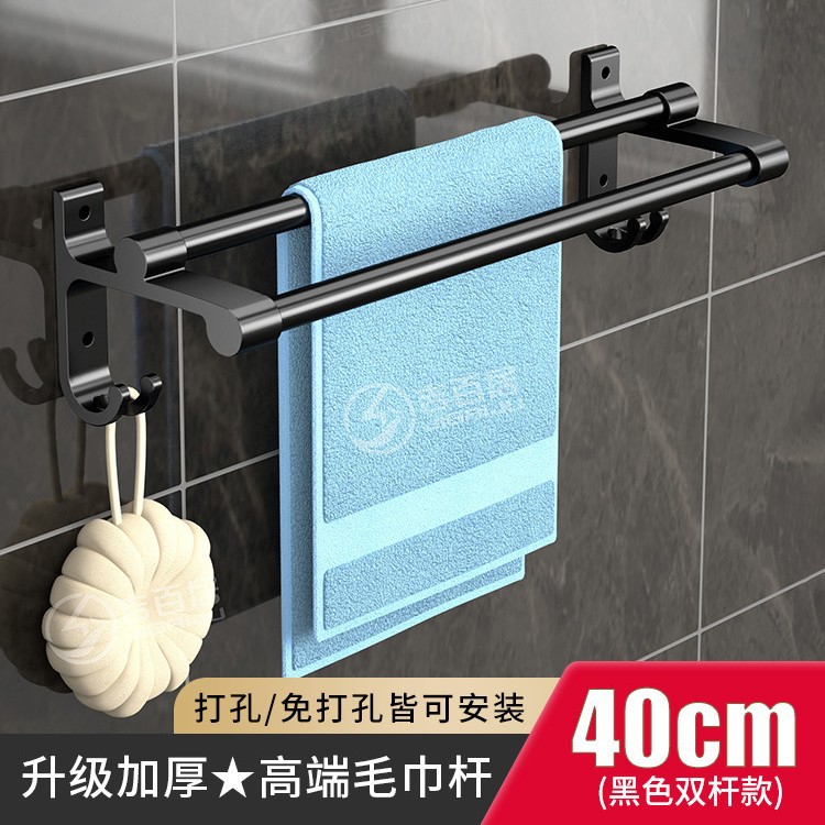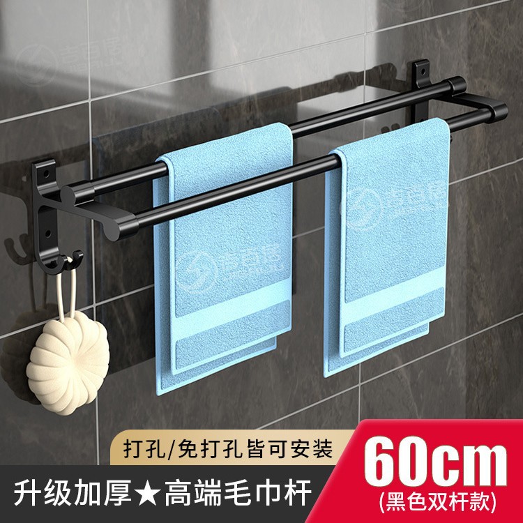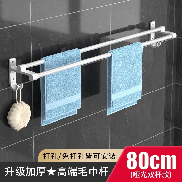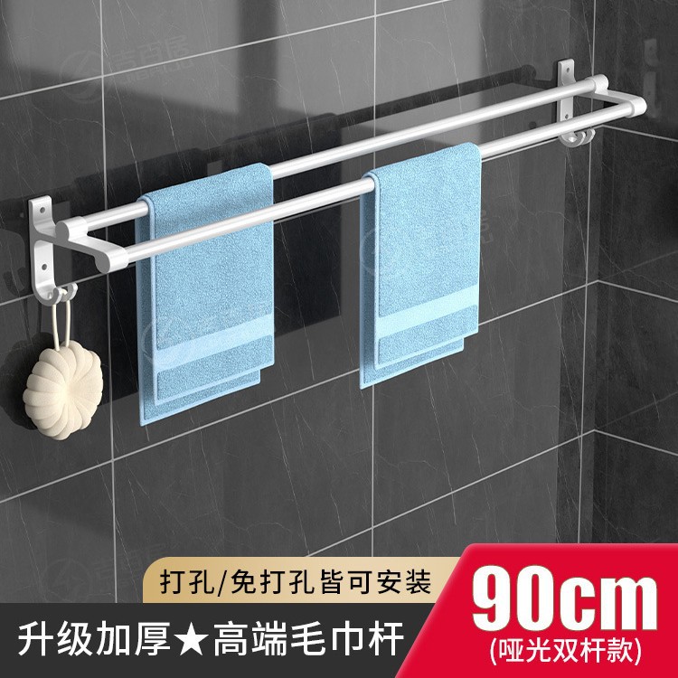 펀치 없는 더블 폴 타월 선반 공간 알루미늄 교수형 폴 벽걸이 욕실 화장실 화장실 걸이 목욕 타올 선반