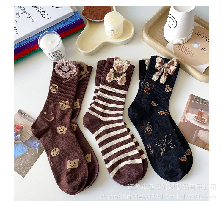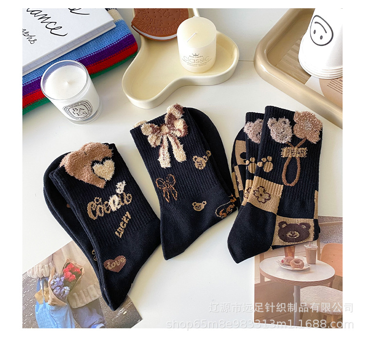 입체 깃털 원사 보석 양말 한국 귀여운 만화 곰 양말 여자 양말 학업 스타일 달콤한 스포츠 양말스토어 가기