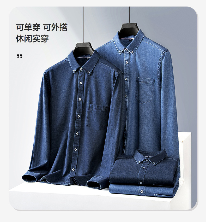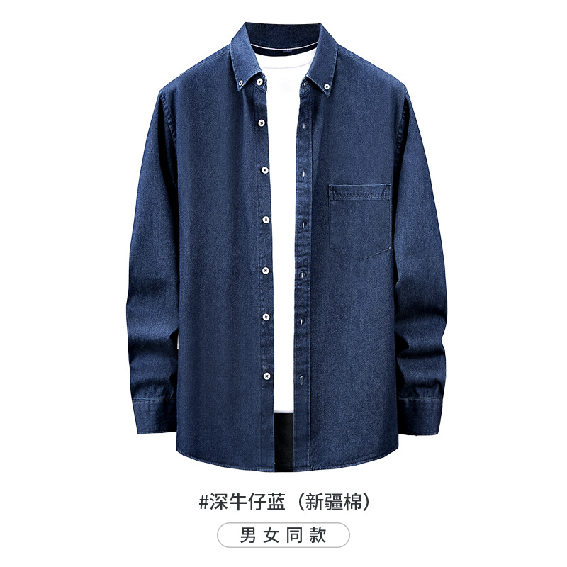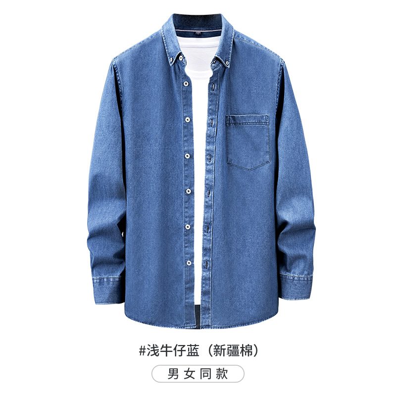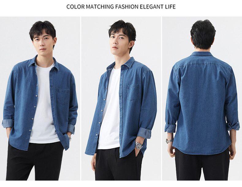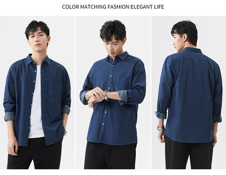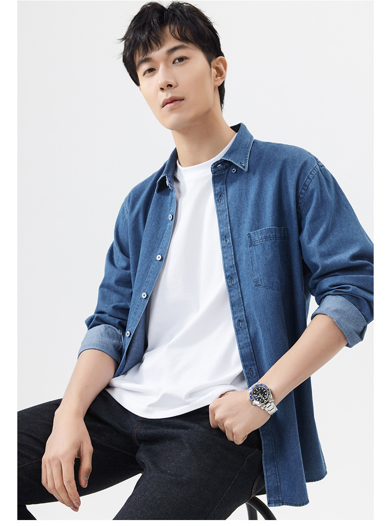 샌드 워시 데님 코튼 라펠 셔츠 남자의 긴 소매 봄 가을과 겨울 남자의 캐주얼 복고풍 셔츠 내부 탑