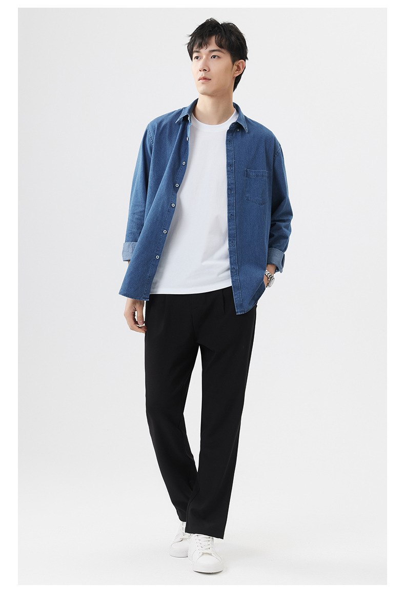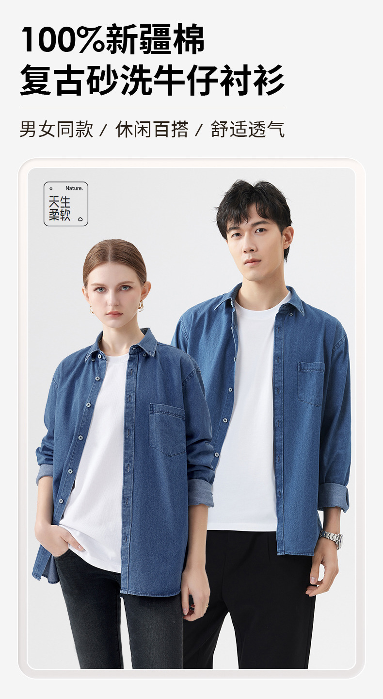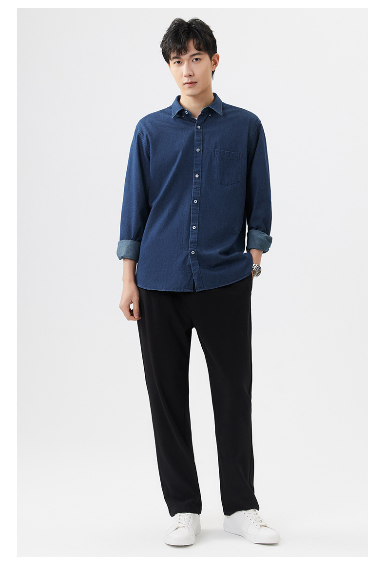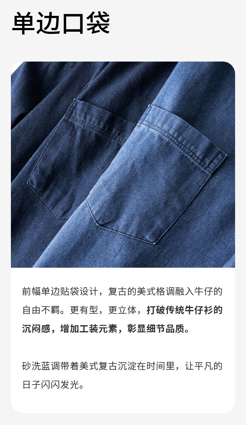 샌드 워시 데님 코튼 라펠 셔츠 남자의 긴 소매 봄 가을과 겨울 남자의 캐주얼 복고풍 셔츠 내부 탑
