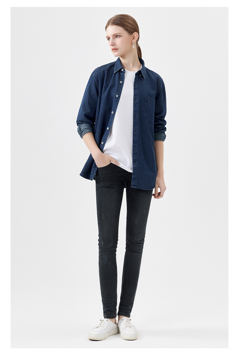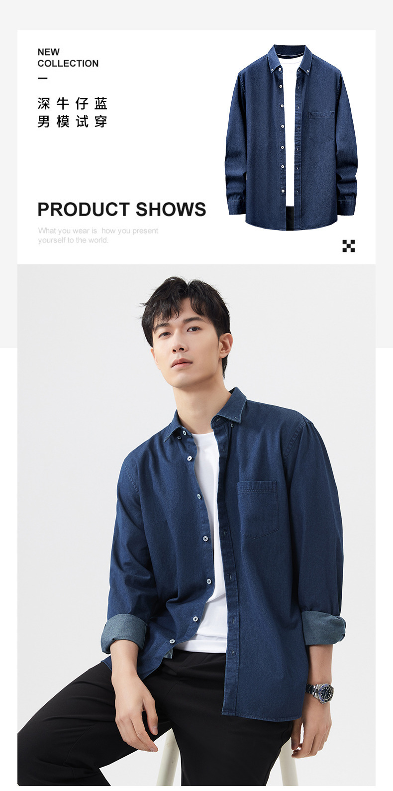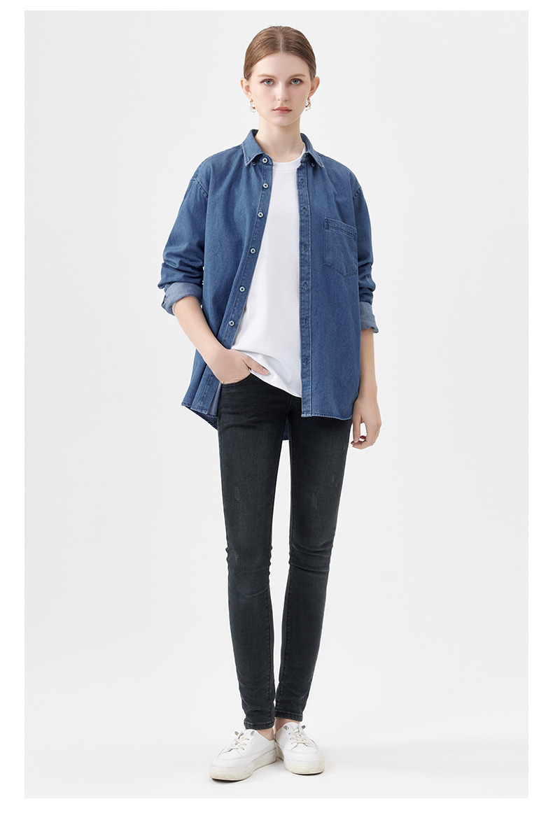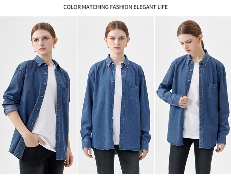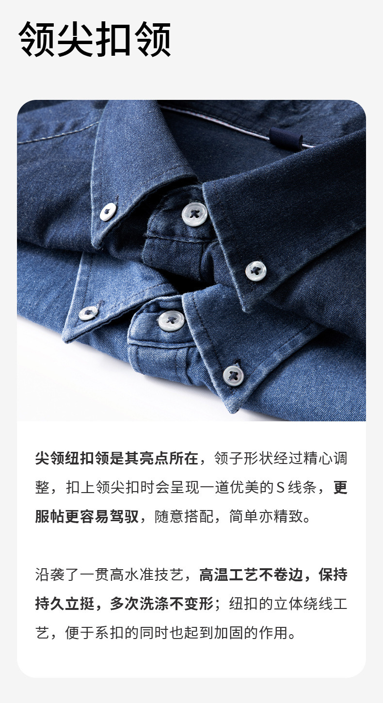 샌드 워시 데님 코튼 라펠 셔츠 남자의 긴 소매 봄 가을과 겨울 남자의 캐주얼 복고풍 셔츠 내부 탑