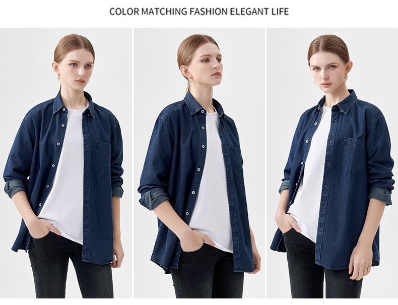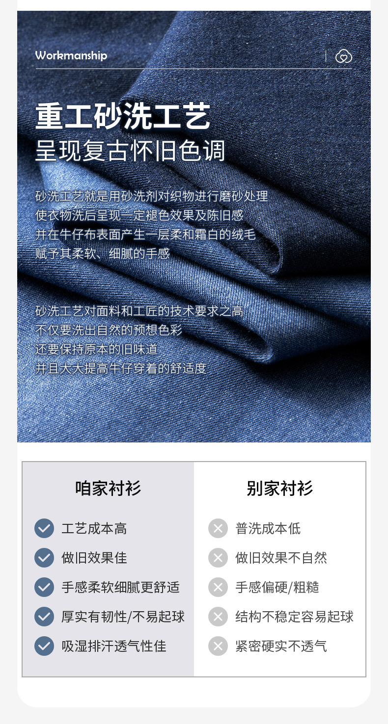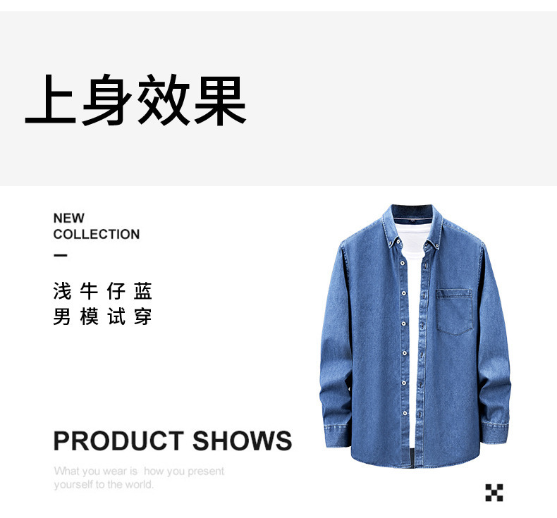 샌드 워시 데님 코튼 라펠 셔츠 남자의 긴 소매 봄 가을과 겨울 남자의 캐주얼 복고풍 셔츠 내부 탑스토어 가기