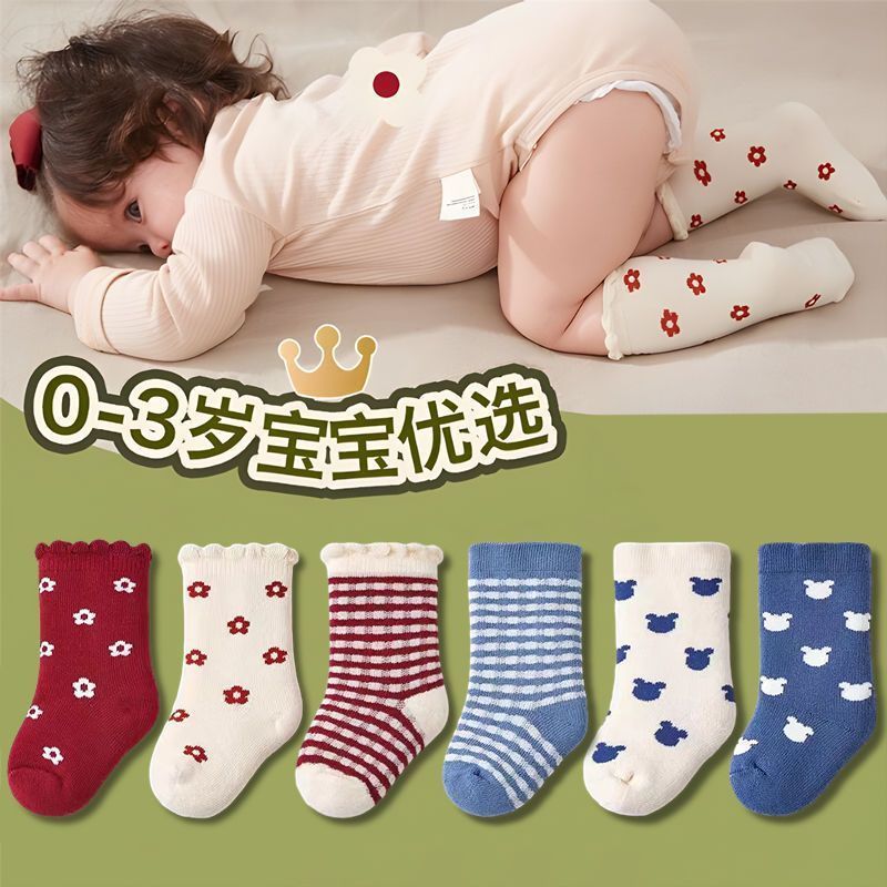 아기 양말 봄, 가을과 겨울 테리 순면 통기성 안티 다리 중간 튜브 남성과 여성을 위한 신생아 아기 양말스토어 가기