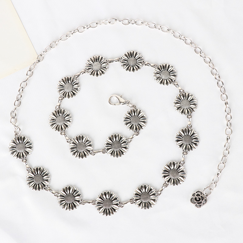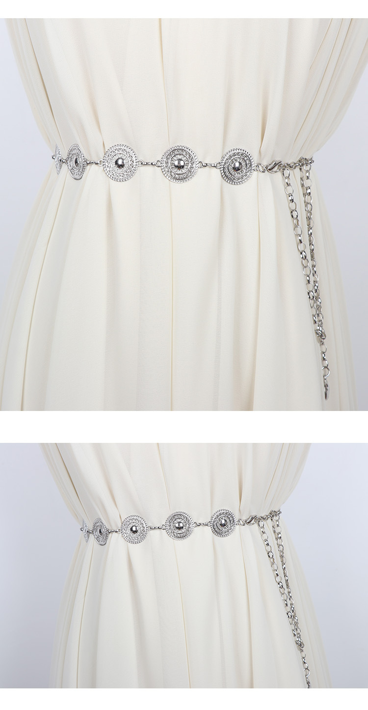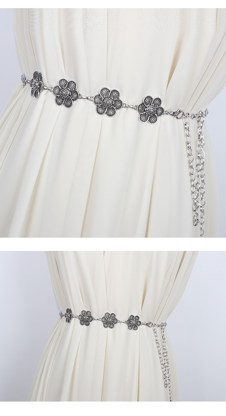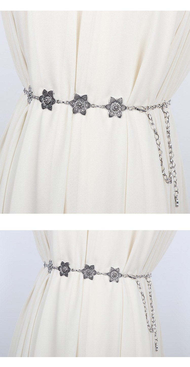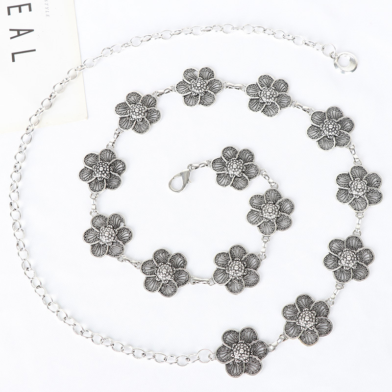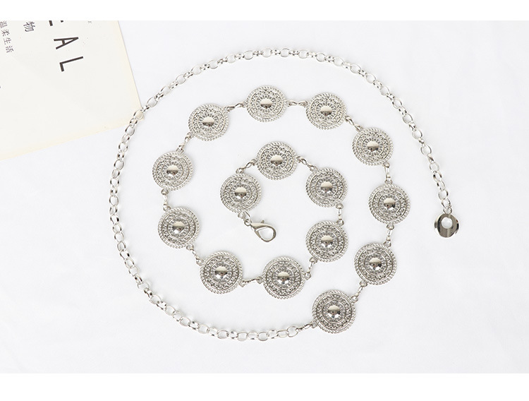 봄과 여름 새로운 패션 우아한 고대 실버 새겨진 허리 체인 민족 스타일 여성의 복고풍 금속 벨트 펑크 스타일 스커트 벨트