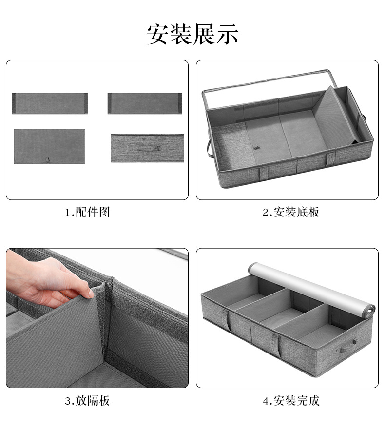 국경 간 패브릭 의류 보관 상자 투명 커버 의류 구획 저장 상자 담요 접이식 홈 침대 적합 상자