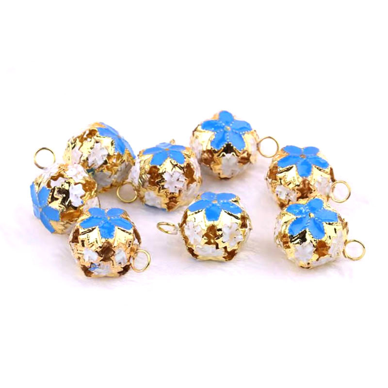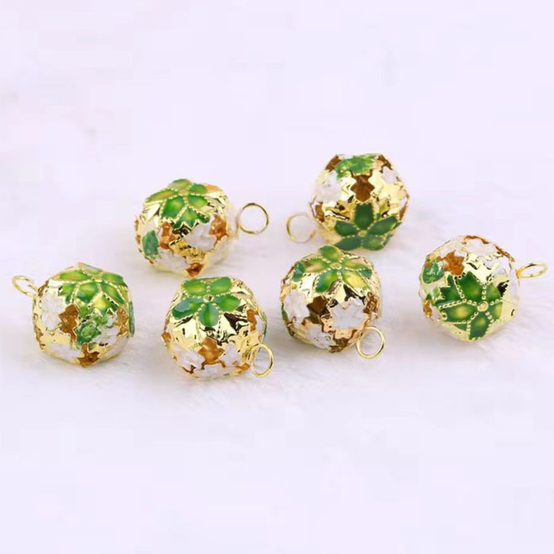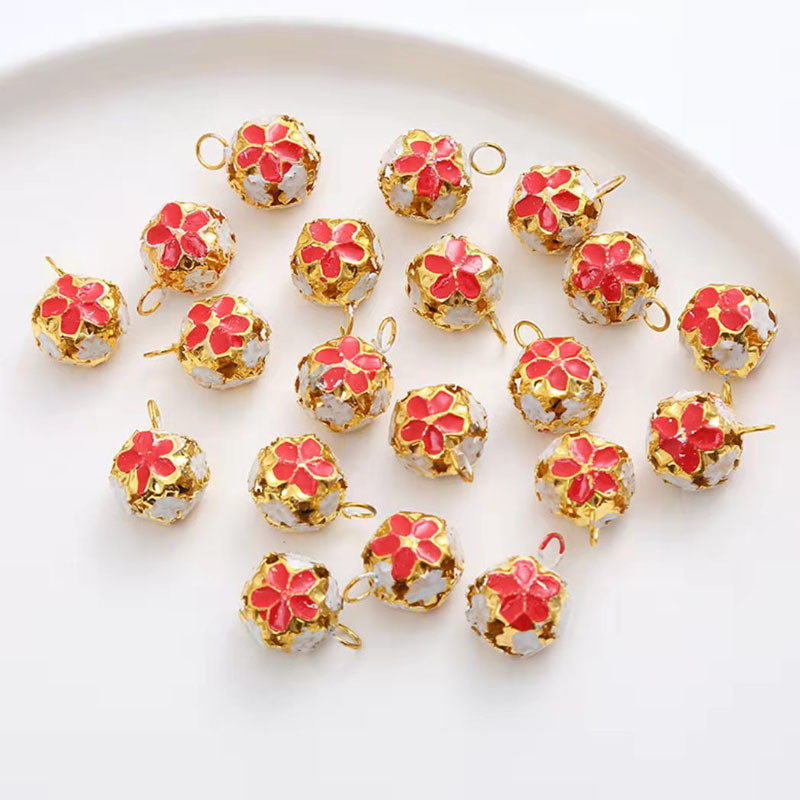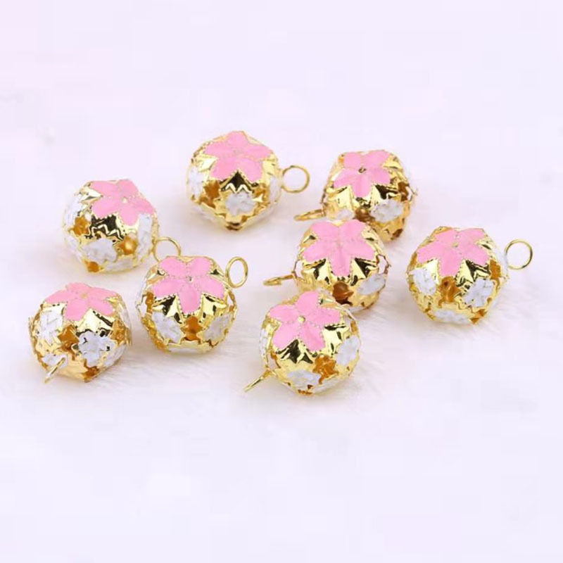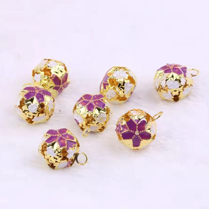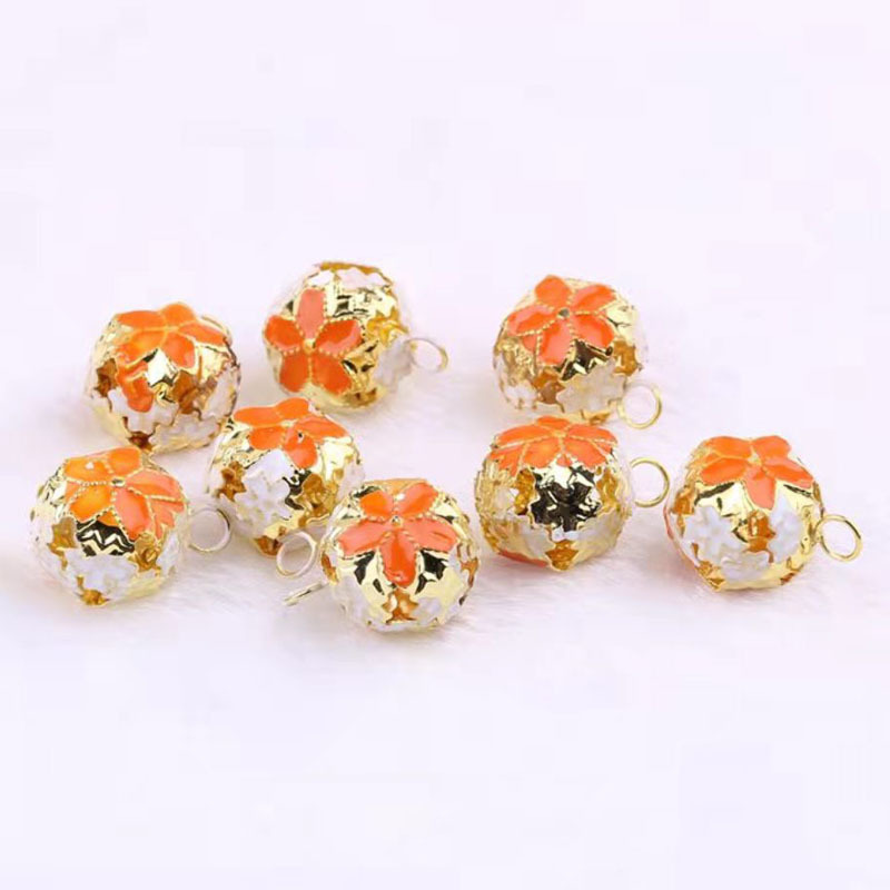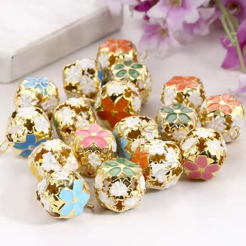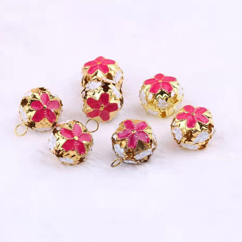 14mm 칠보 벨 diy 보석 펜던트 액세서리 빈티지 중공 페인트 꽃 공 애완 동물 소형 벨 도매