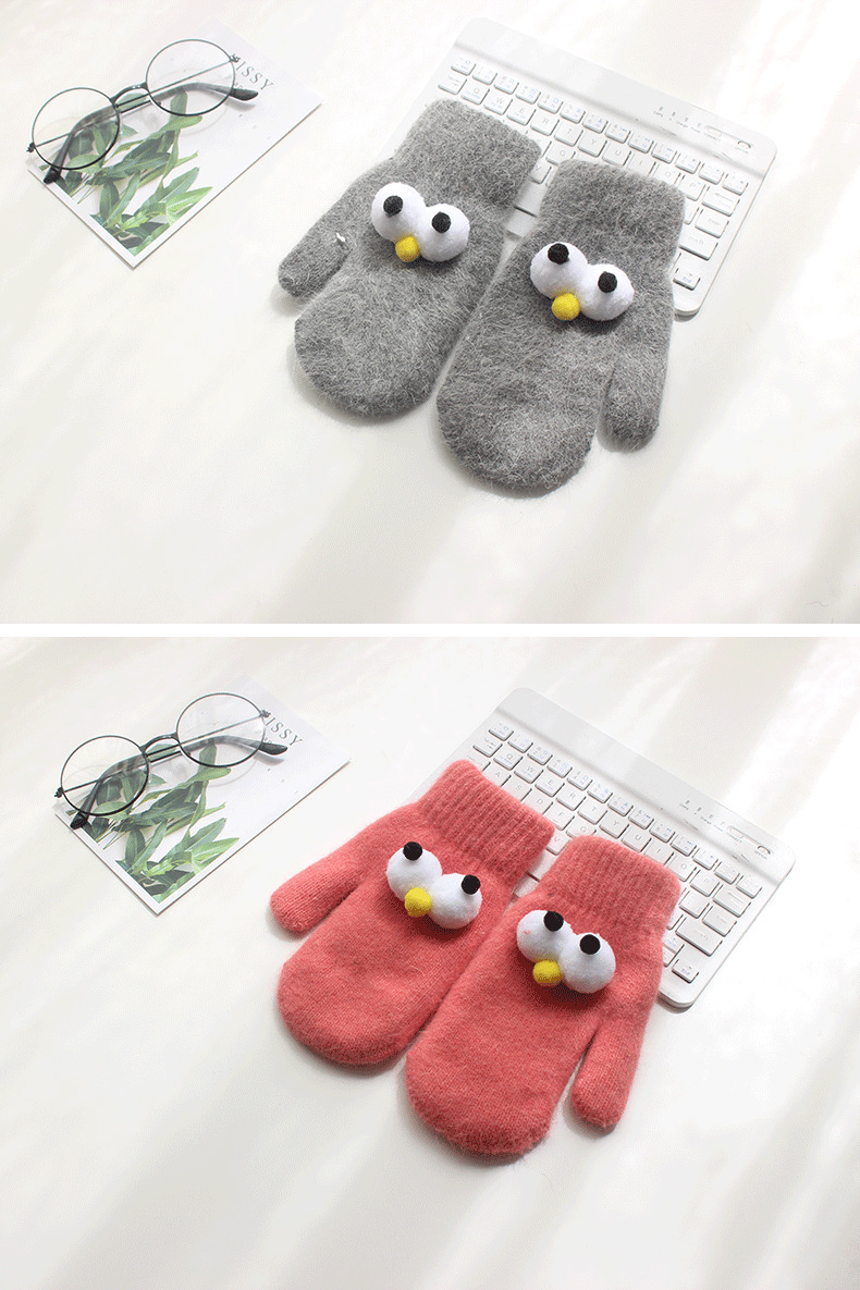만화 니트 장갑 여자의 기모 부모-아이 따뜻한 두꺼운 만화 어린이 장갑 토끼 모피 커플 장갑스토어 가기