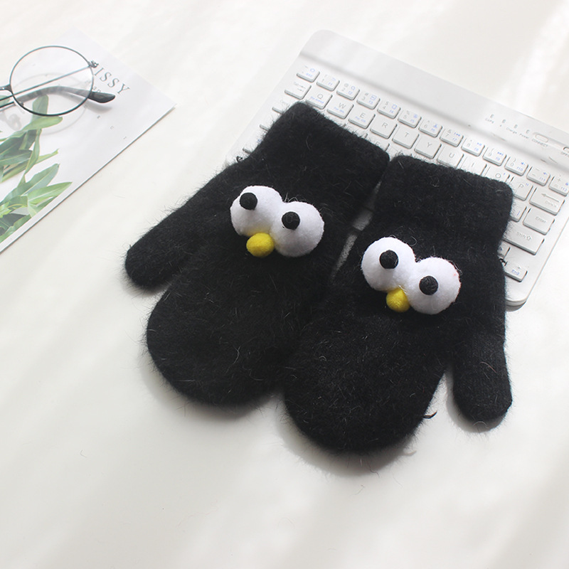 만화 니트 장갑 여자의 기모 부모-아이 따뜻한 두꺼운 만화 어린이 장갑 토끼 모피 커플 장갑