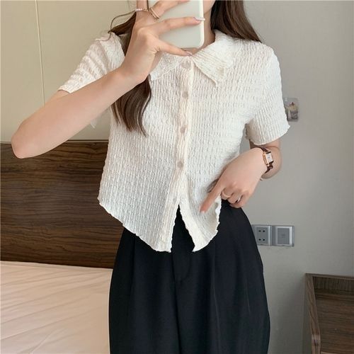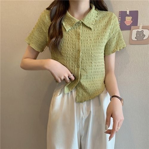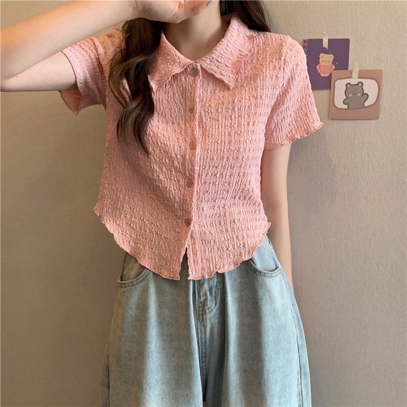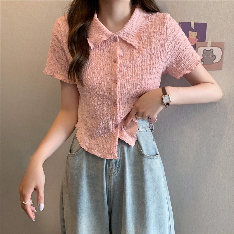 재고 아카데미 스타일 달콤한 나이 감소 POIO 칼라 탑 여성 2022 한국 스타일 소녀의 슬리밍 모든 경기 반소매 셔츠 여성스토어 가기