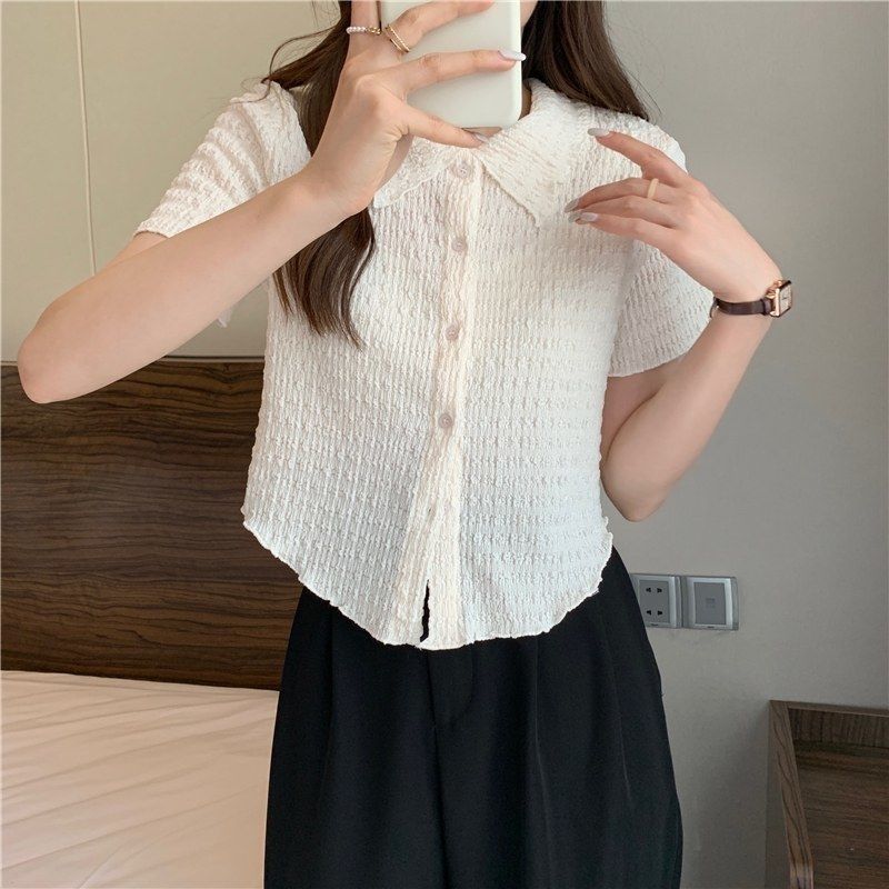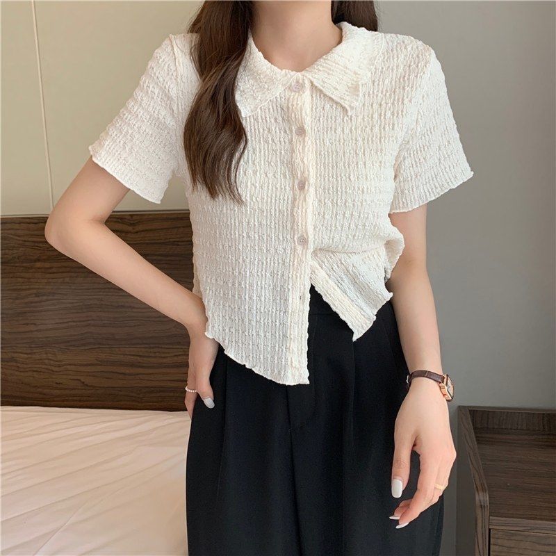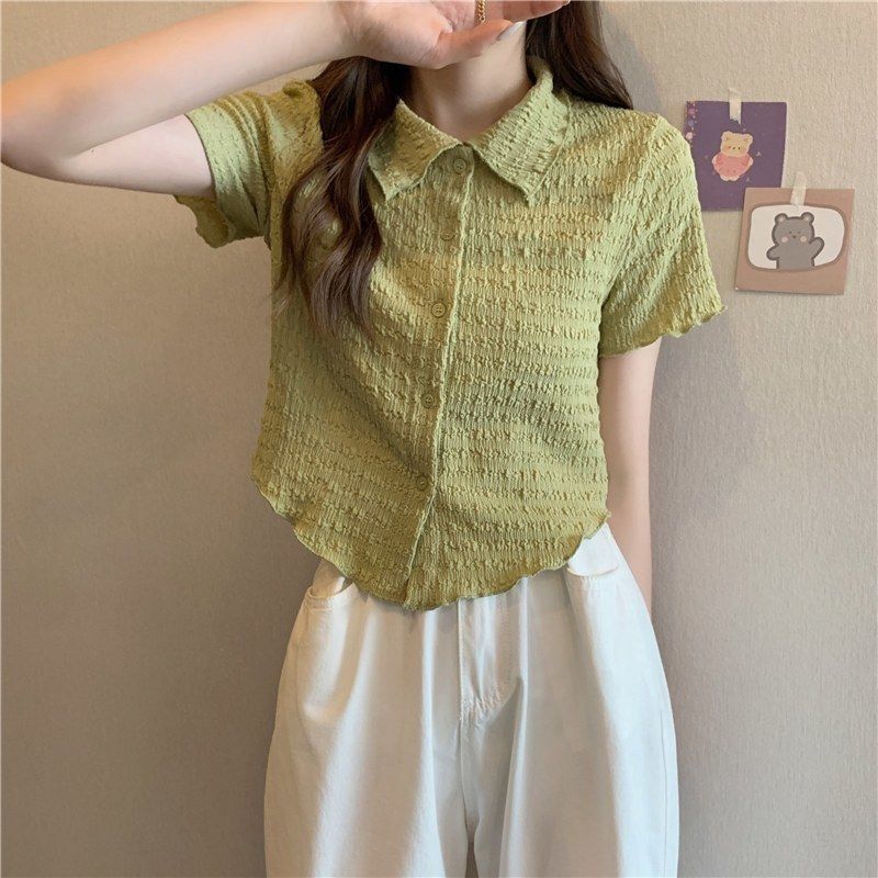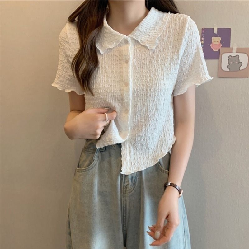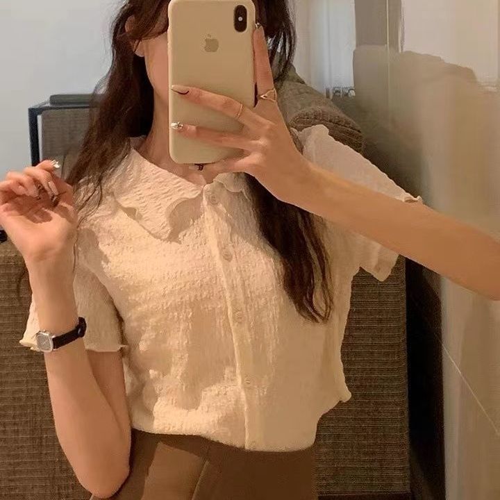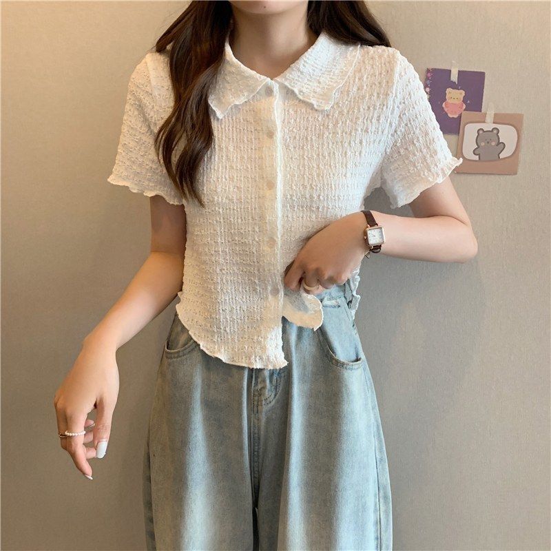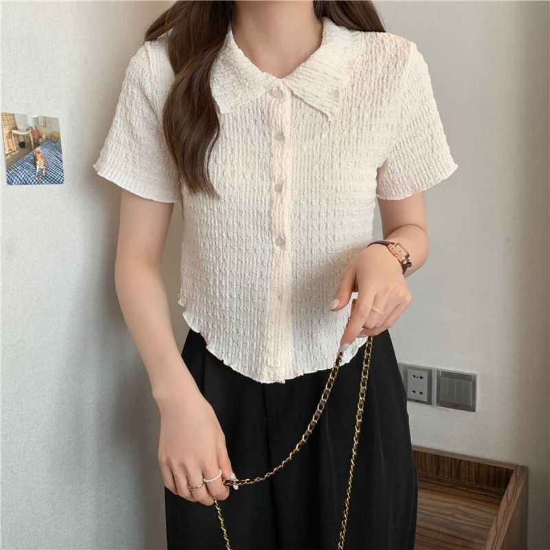 재고 아카데미 스타일 달콤한 나이 감소 POIO 칼라 탑 여성 2022 한국 스타일 소녀의 슬리밍 모든 경기 반소매 셔츠 여성
