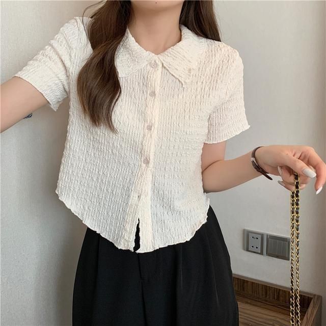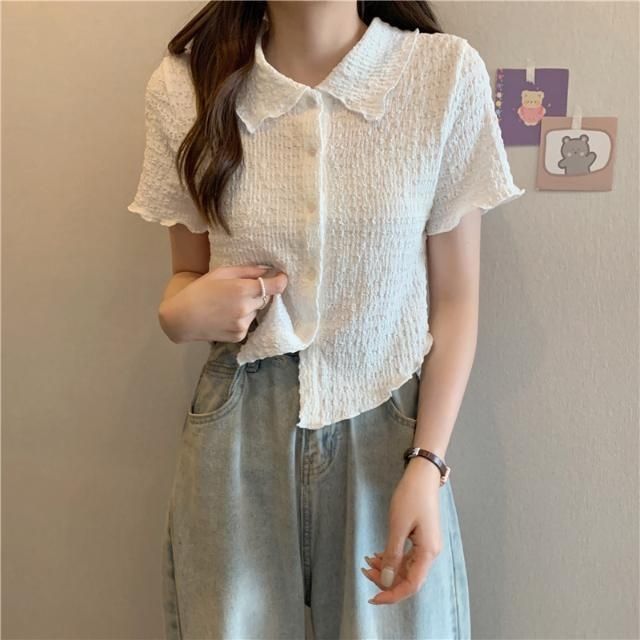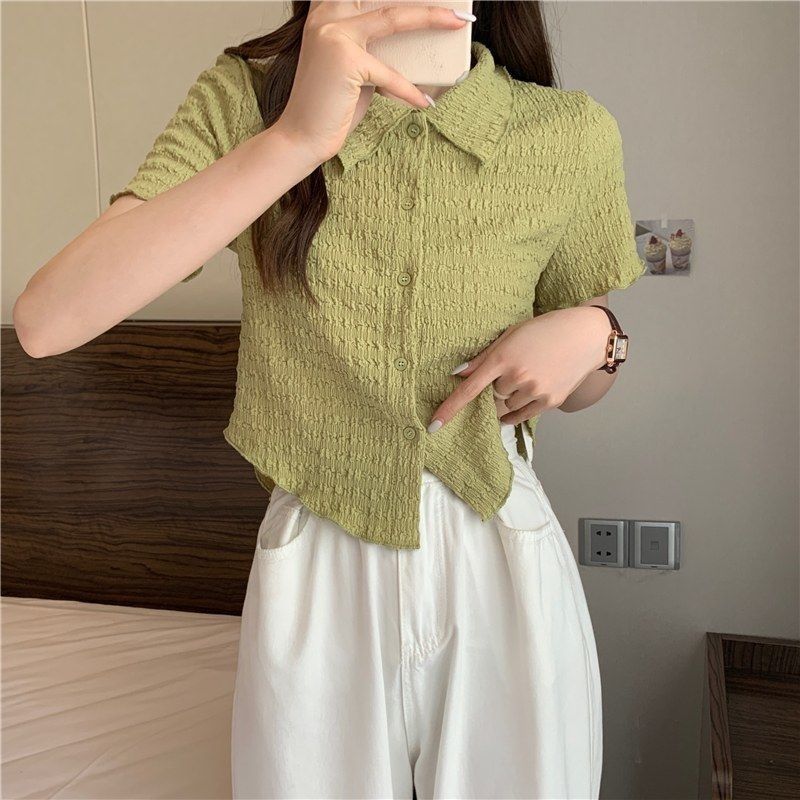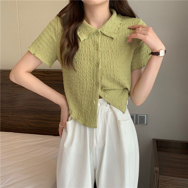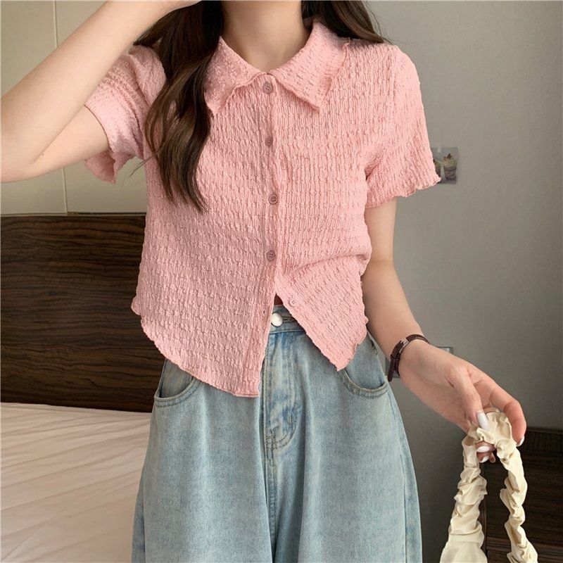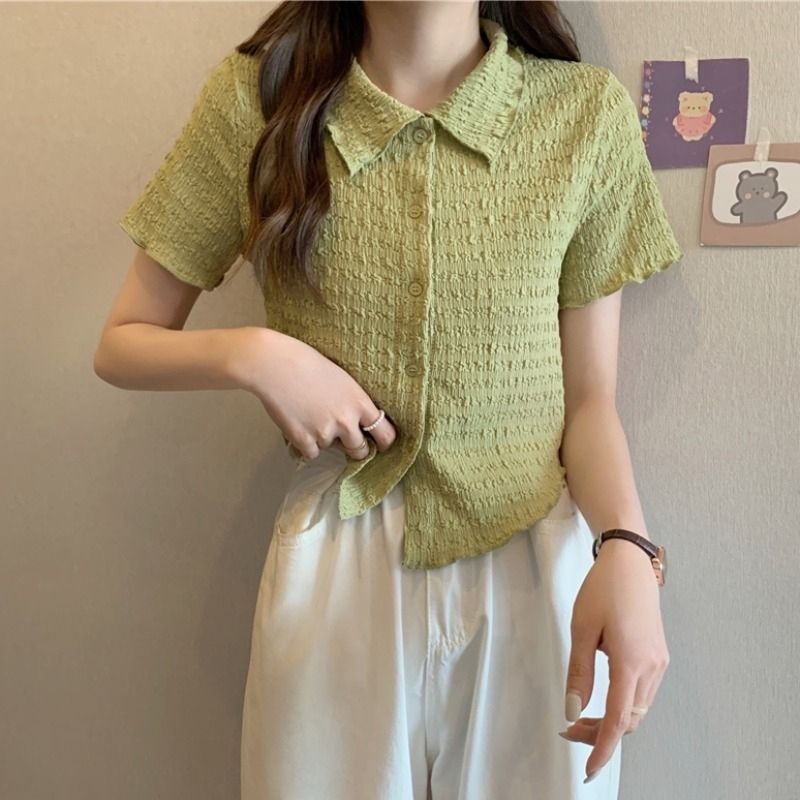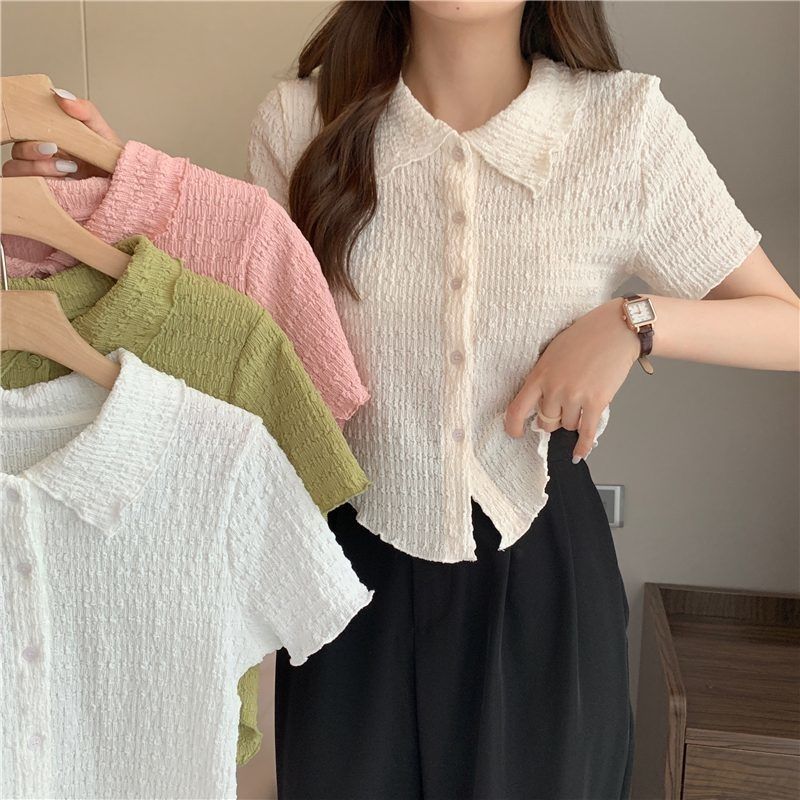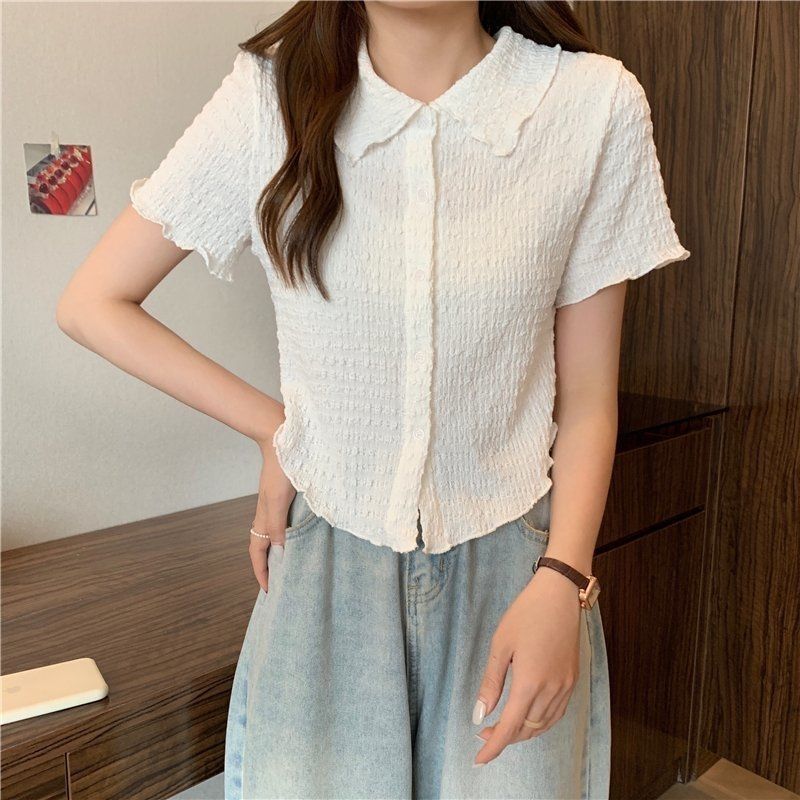 재고 아카데미 스타일 달콤한 나이 감소 POIO 칼라 탑 여성 2022 한국 스타일 소녀의 슬리밍 모든 경기 반소매 셔츠 여성