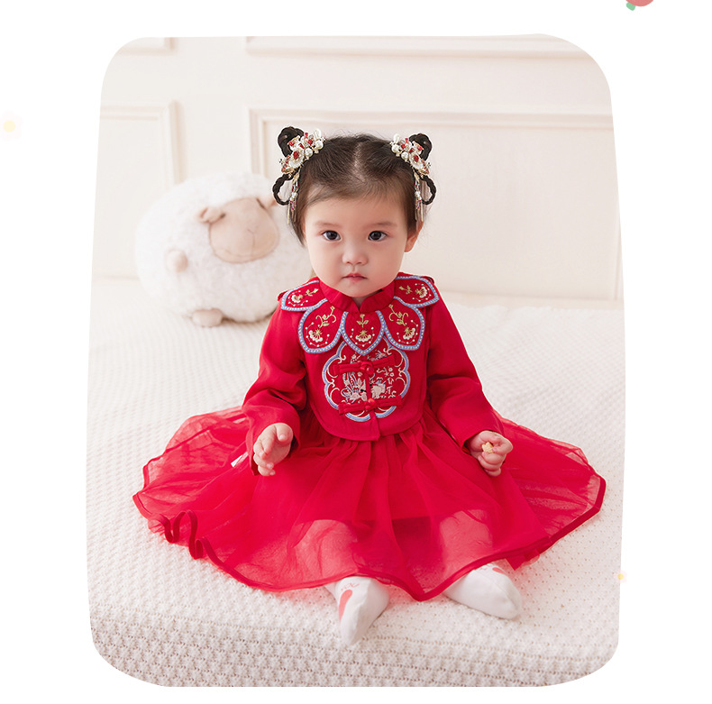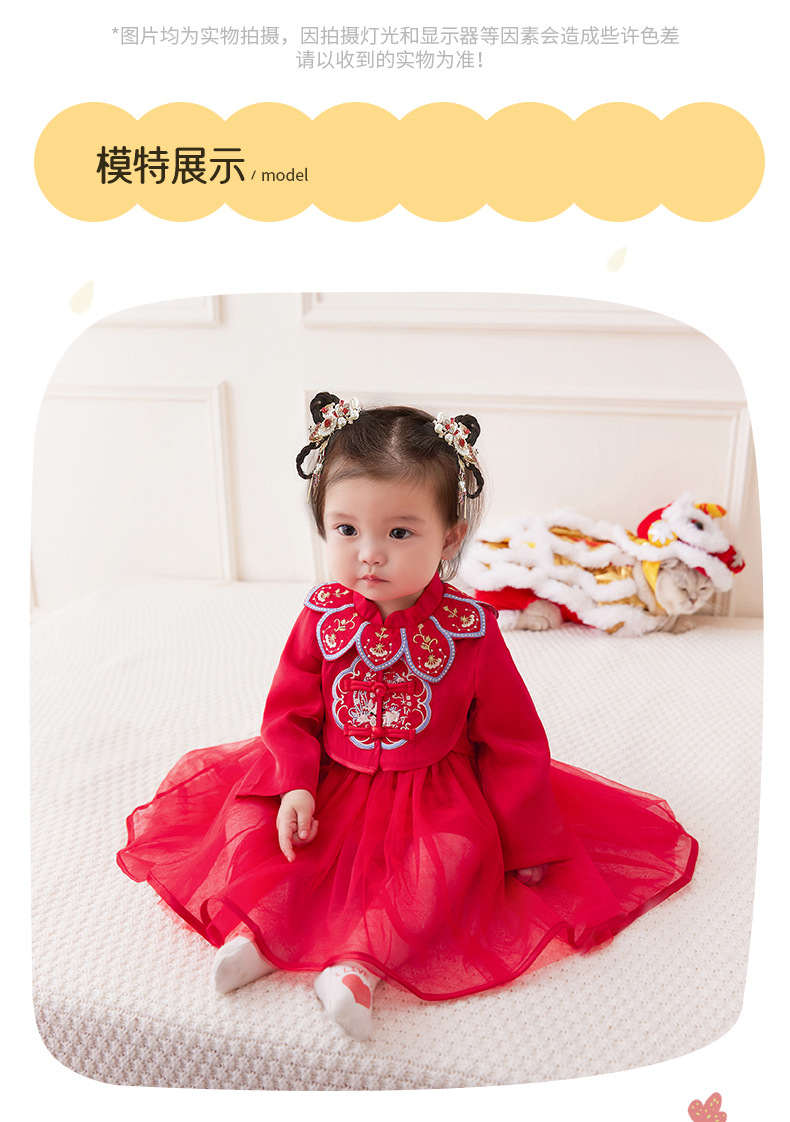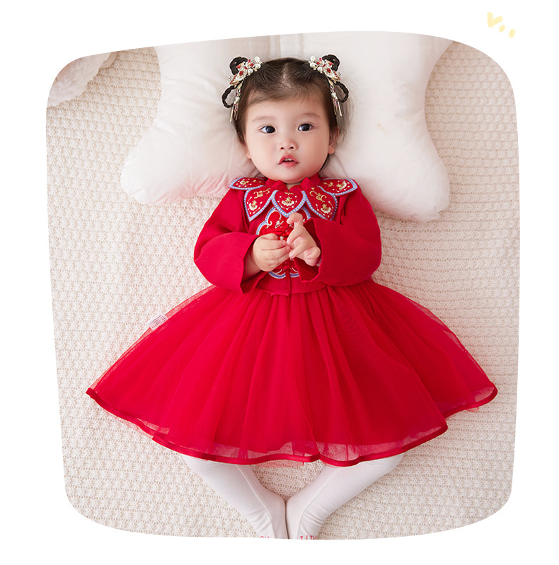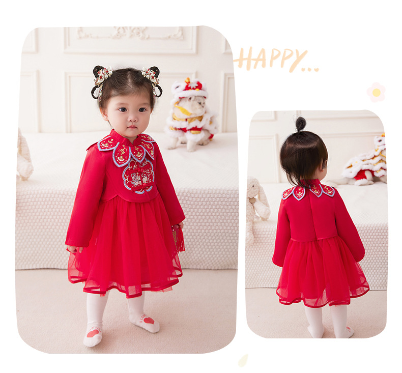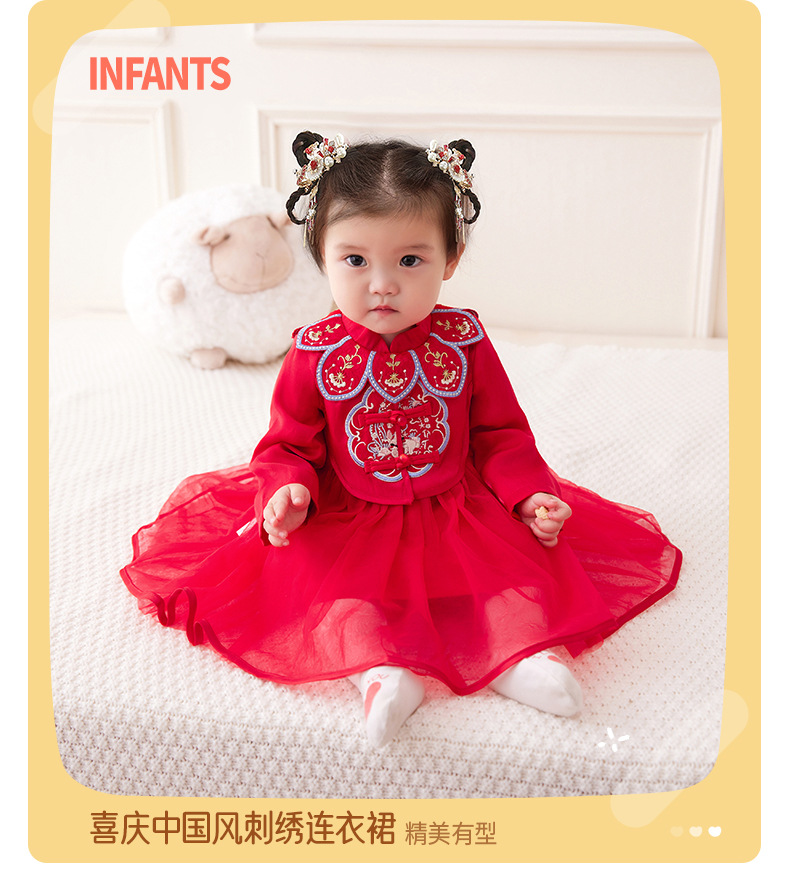 아이디어 아기 소녀 2023 가을 새로운 원피스 패션 중국 스타일 축제 새해 원피스 공주 원피스 3018스토어 가기