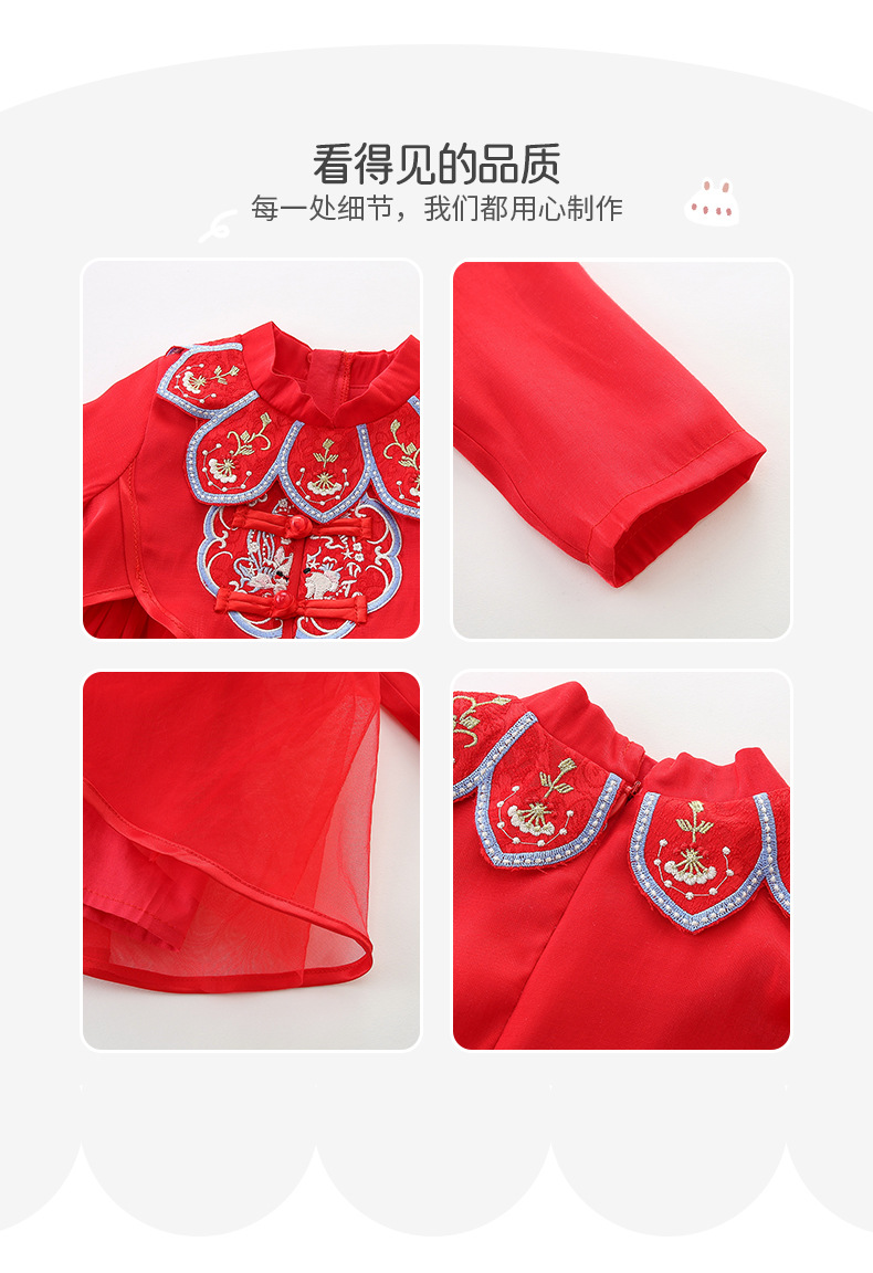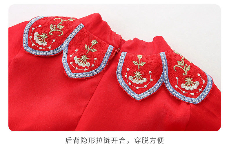 아이디어 아기 소녀 2023 가을 새로운 원피스 패션 중국 스타일 축제 새해 원피스 공주 원피스 3018