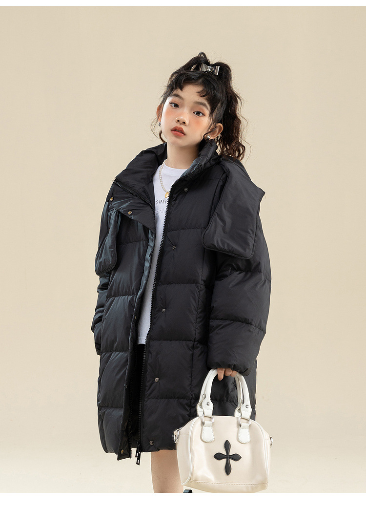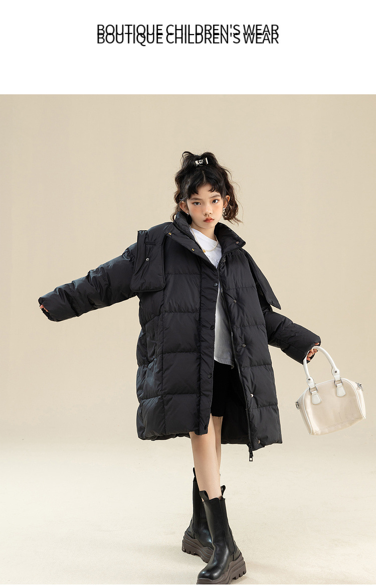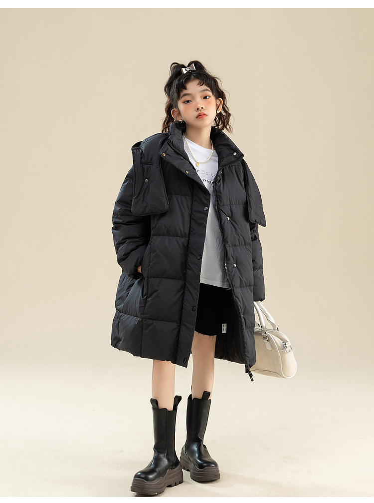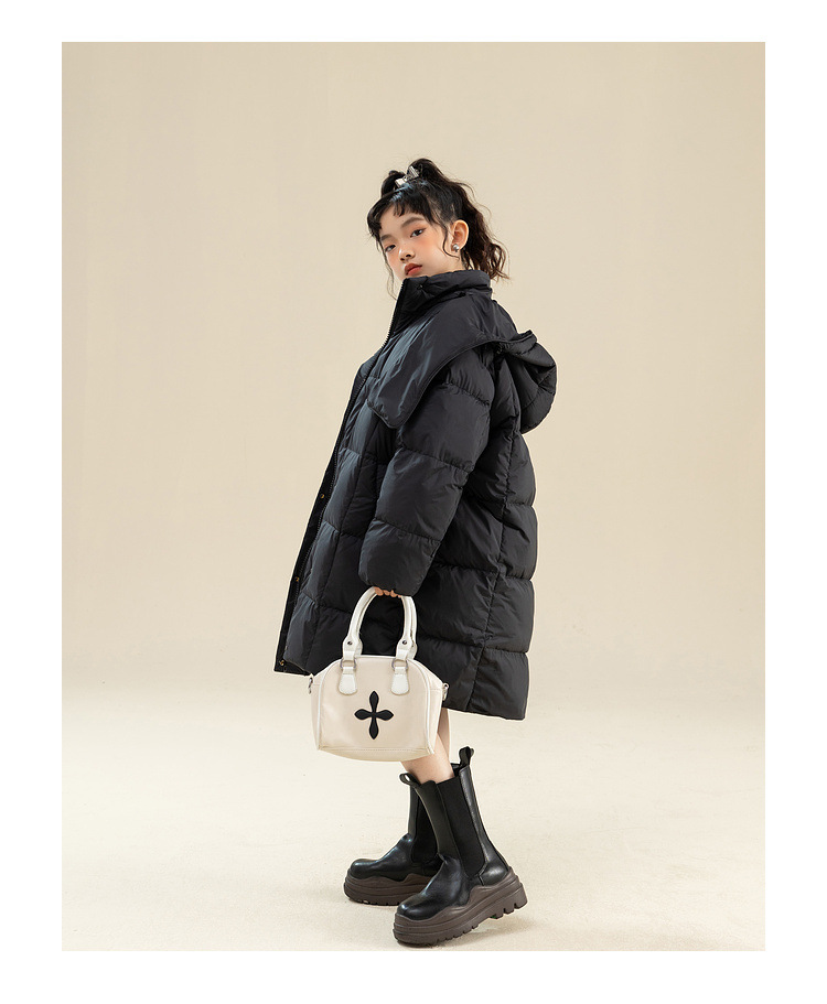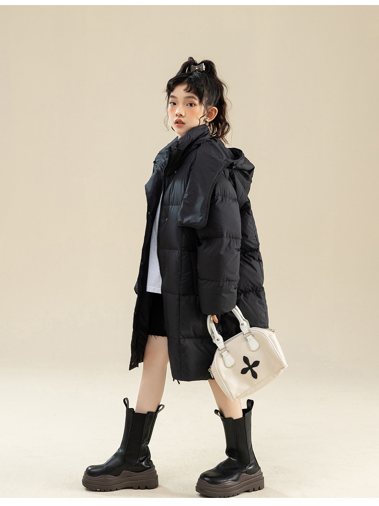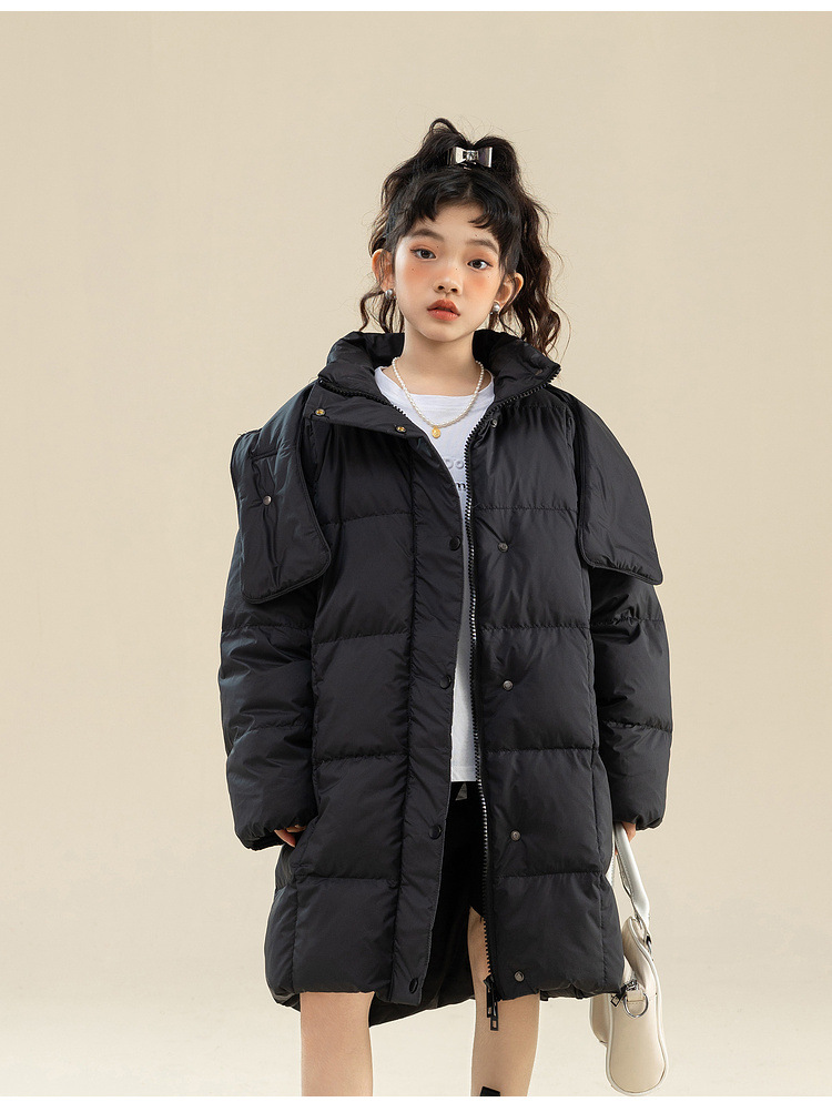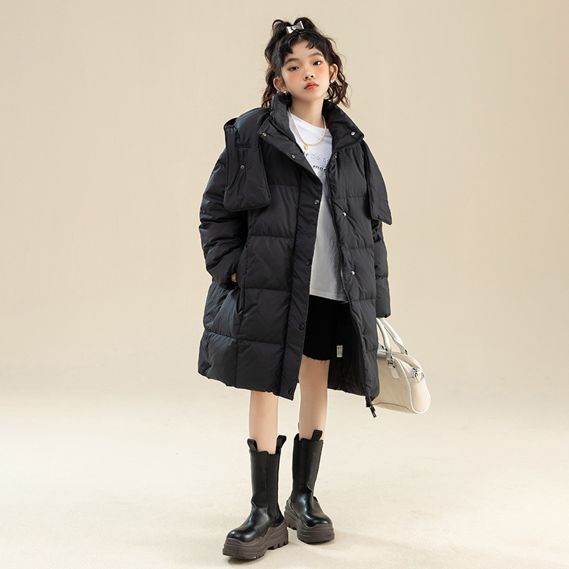 Fenghe 소녀의 다운 재킷 겨울 2023 새로운 서양 스타일 유행 큰 어린이 두꺼운 겨울 옷 어린이 흰 오리 다운