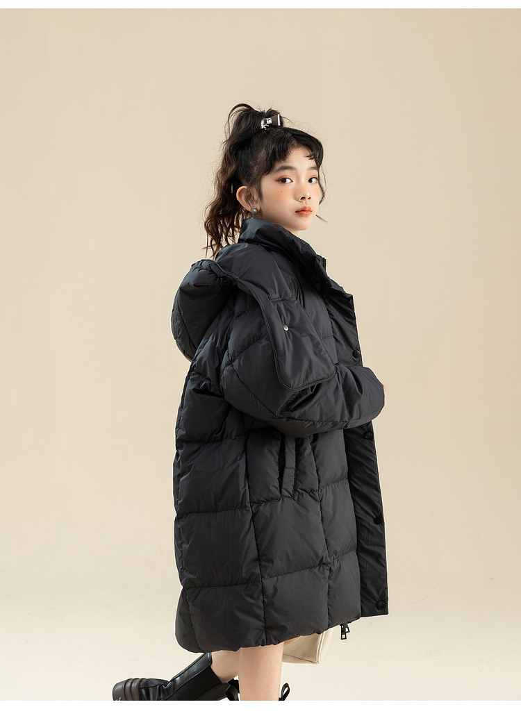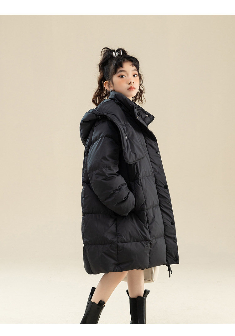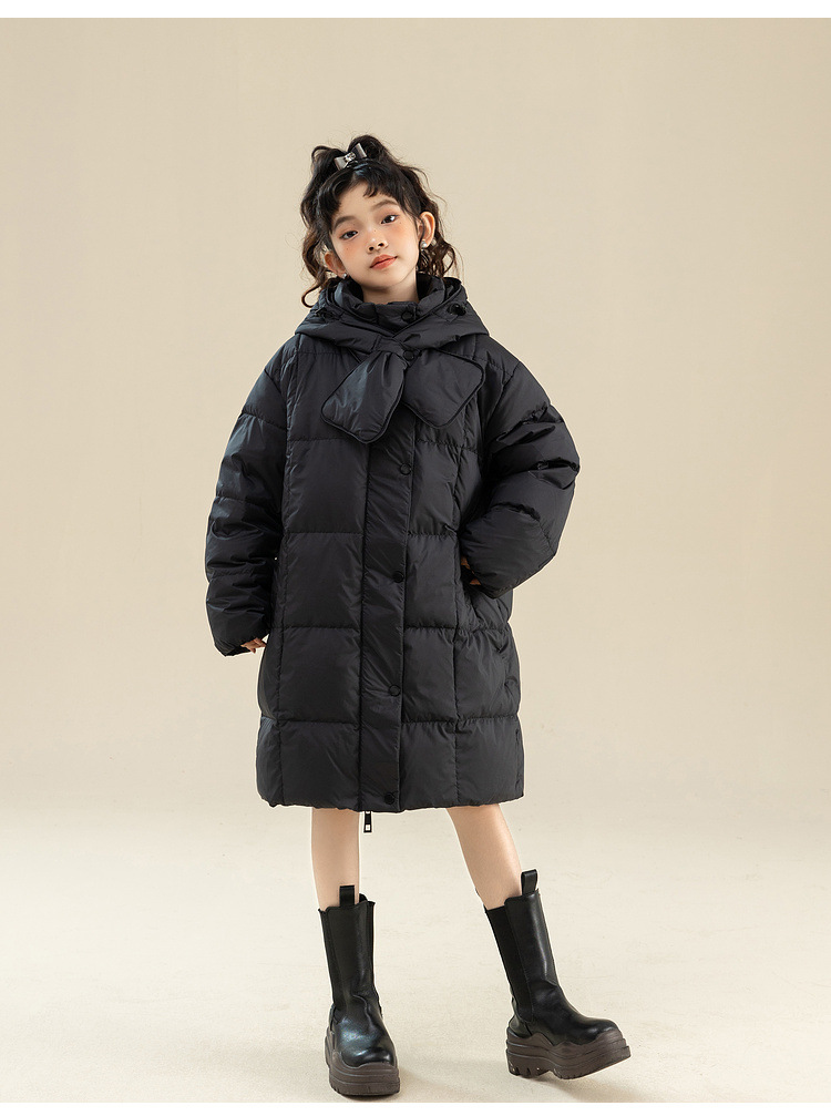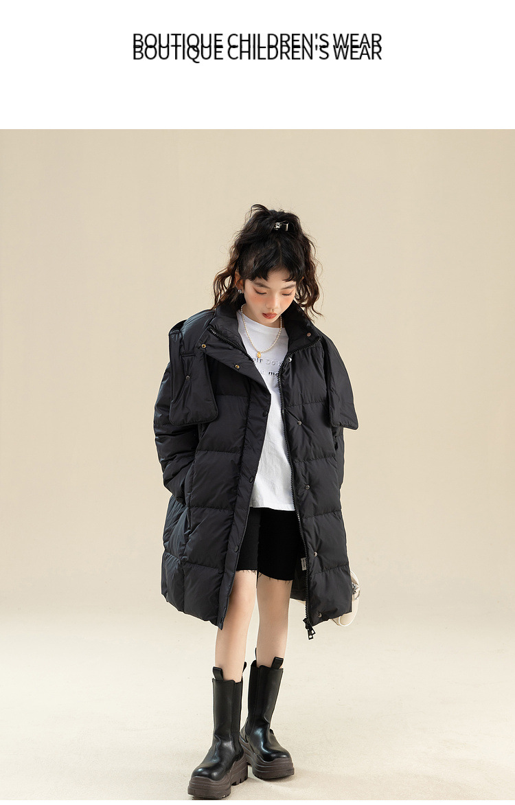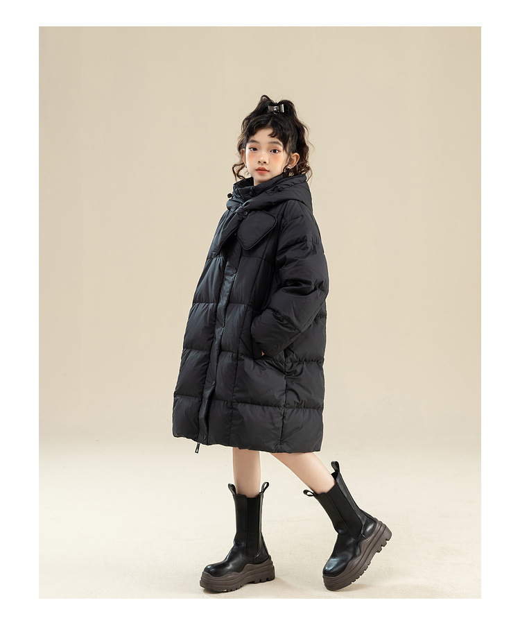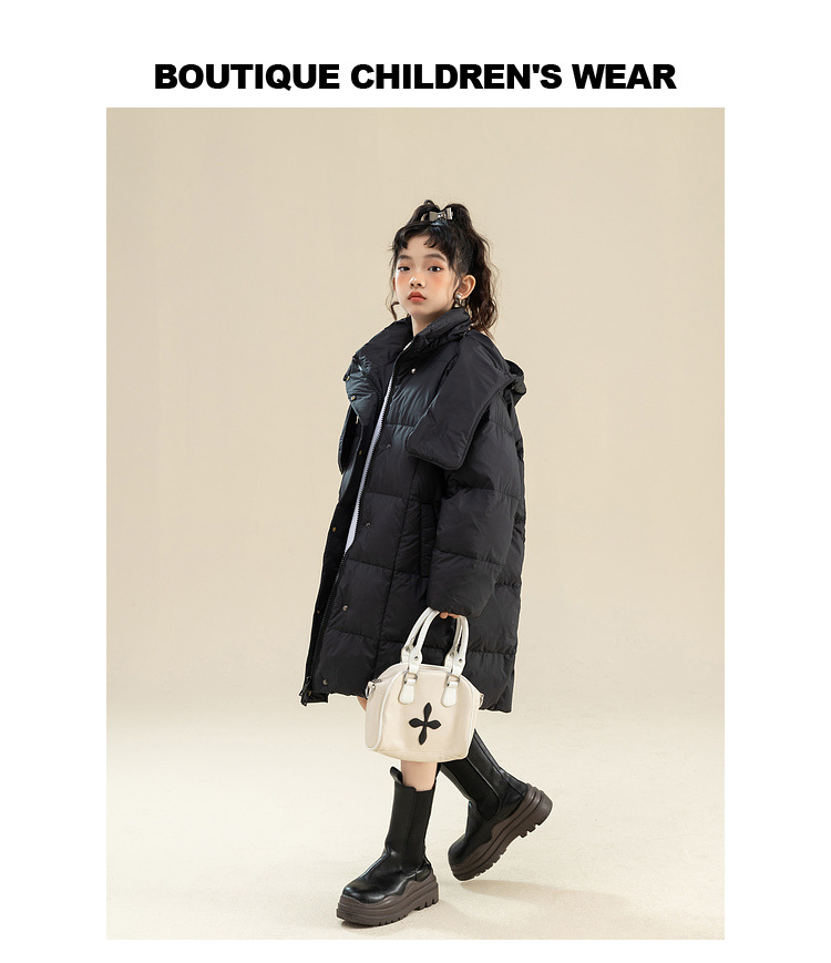 Fenghe 소녀의 다운 재킷 겨울 2023 새로운 서양 스타일 유행 큰 어린이 두꺼운 겨울 옷 어린이 흰 오리 다운