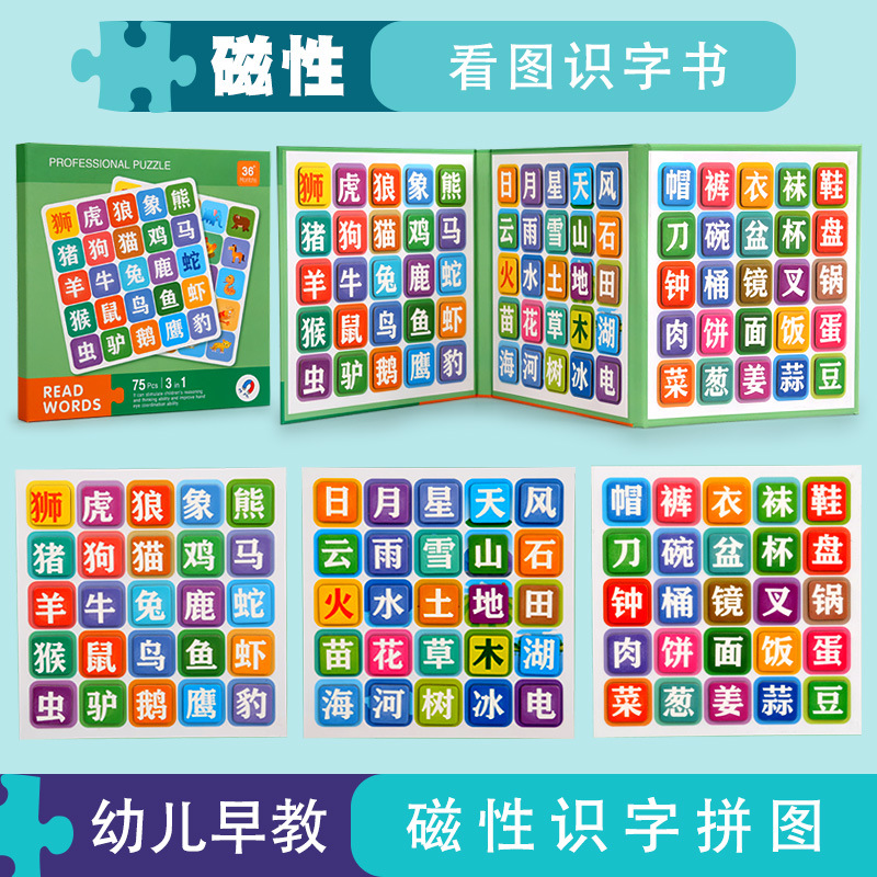 그림을보세요 문맹 퇴치 인식 자기 퍼즐 아기 계몽 인식 어린이 몬테소리 조기 교육 교육용 자기 장난감스토어 가기