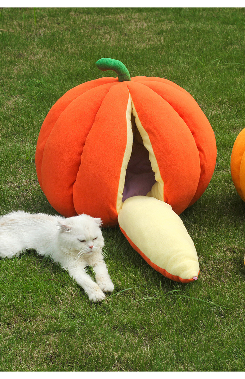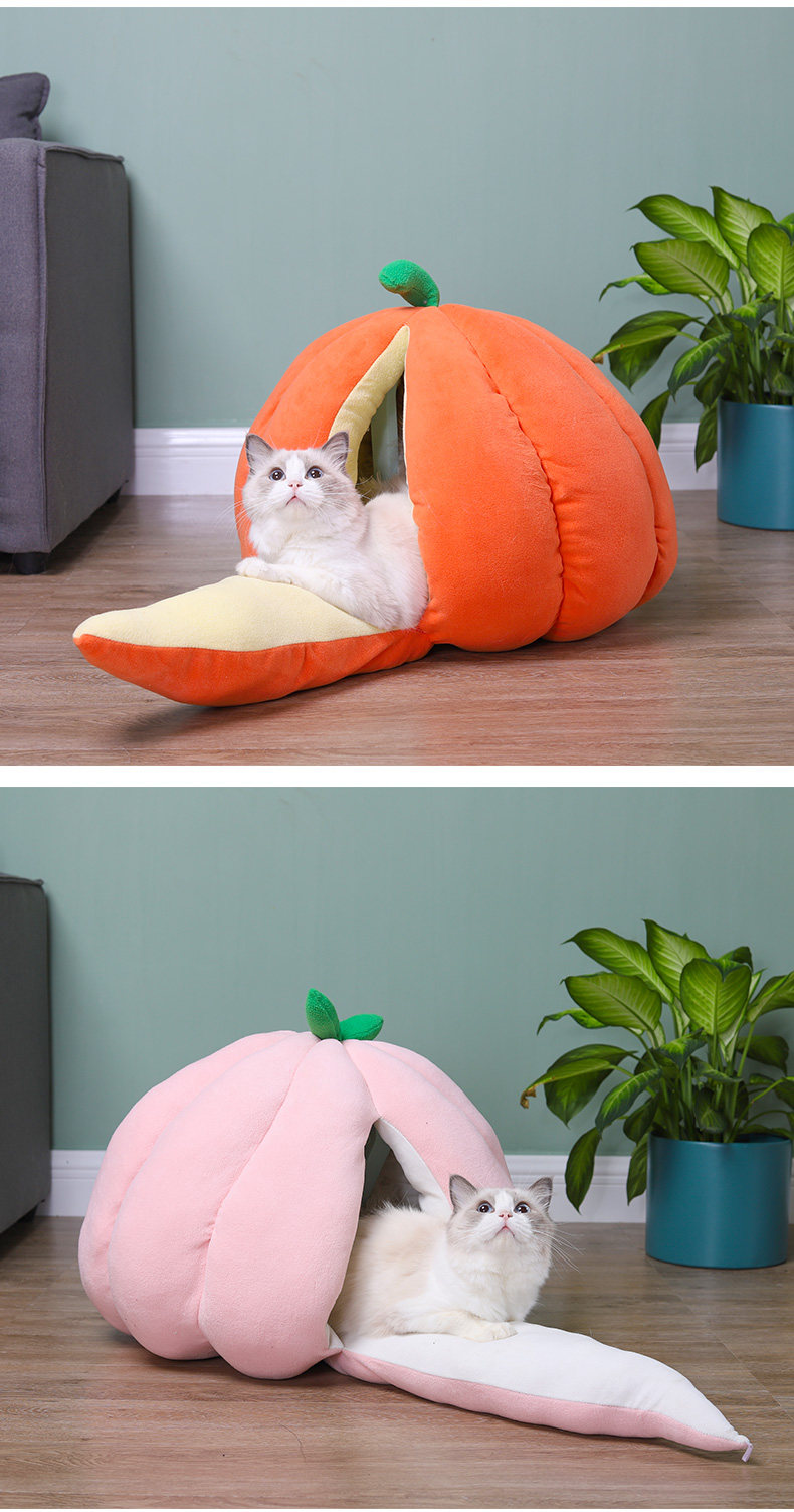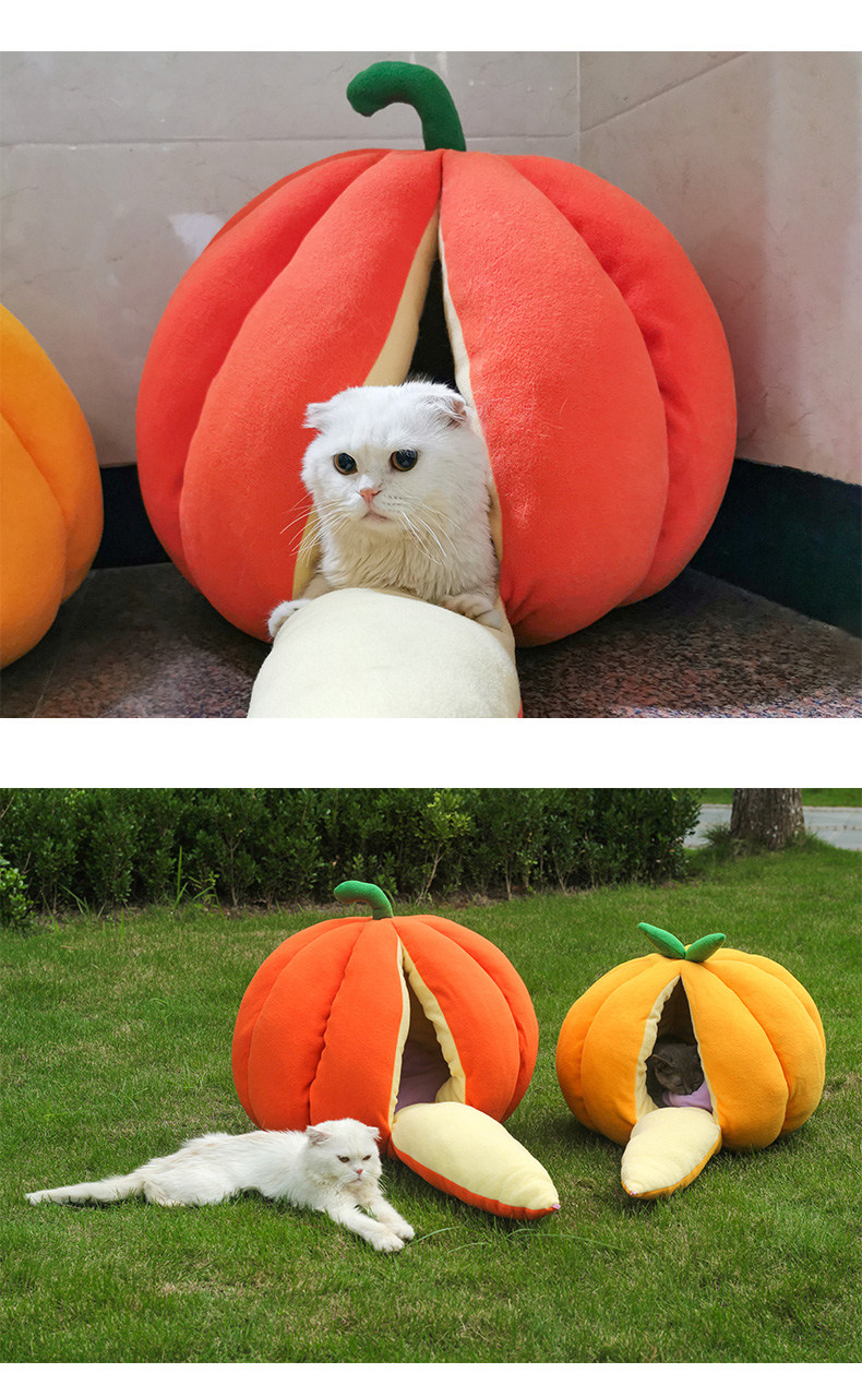 호박 고양이 개집 개 고양이 오렌지 개집 따뜻한 겨울 완전 밀폐 테디 개집 오렌지 고양이 호박 개집 겨울스토어 가기