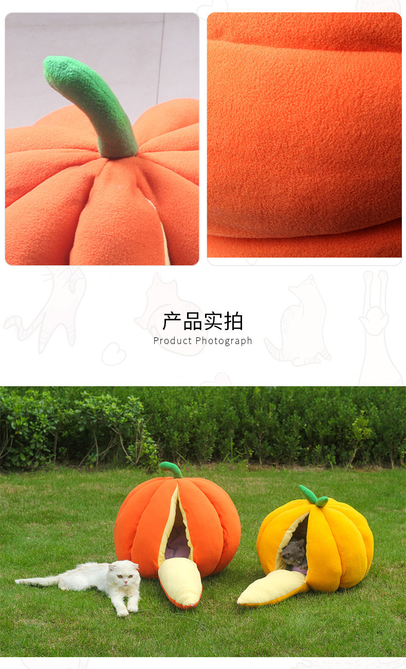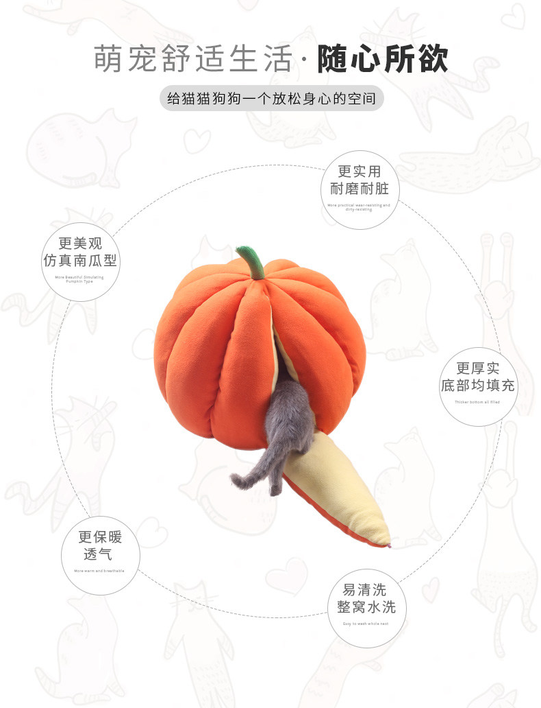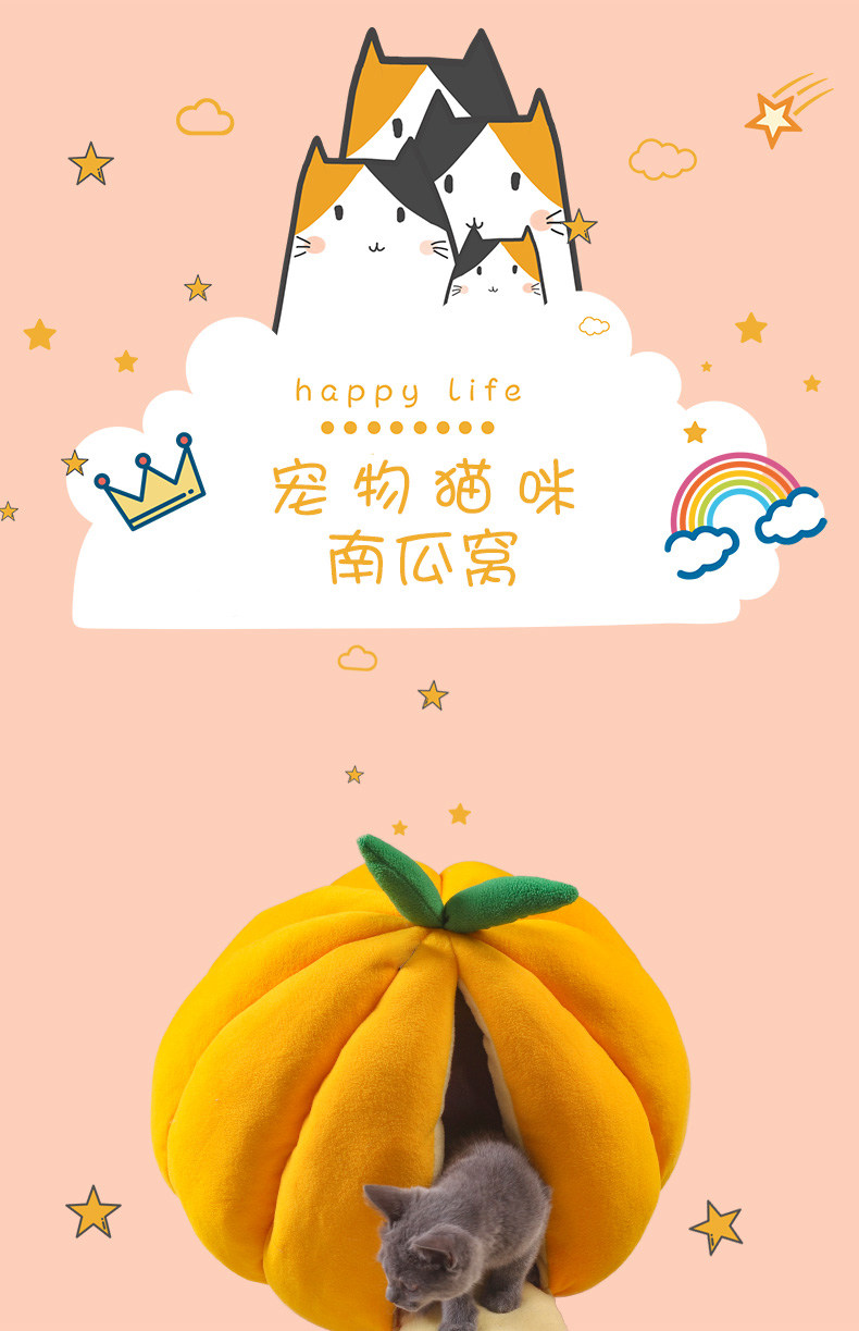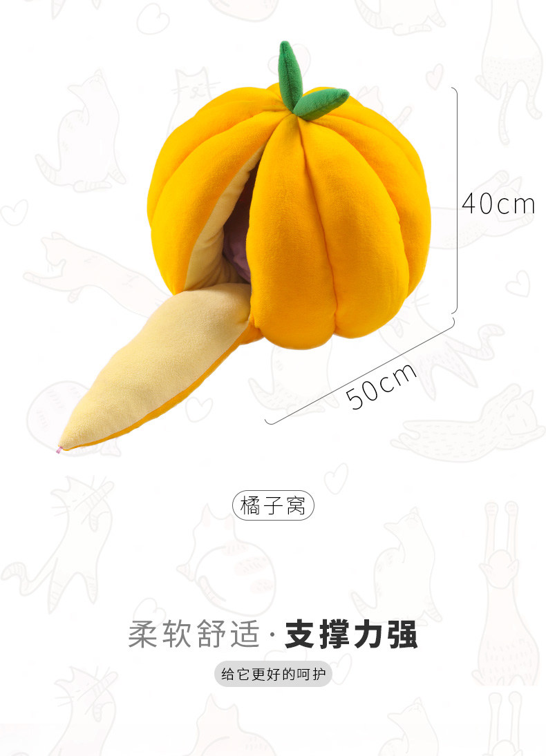 호박 고양이 개집 개 고양이 오렌지 개집 따뜻한 겨울 완전 밀폐 테디 개집 오렌지 고양이 호박 개집 겨울스토어 가기