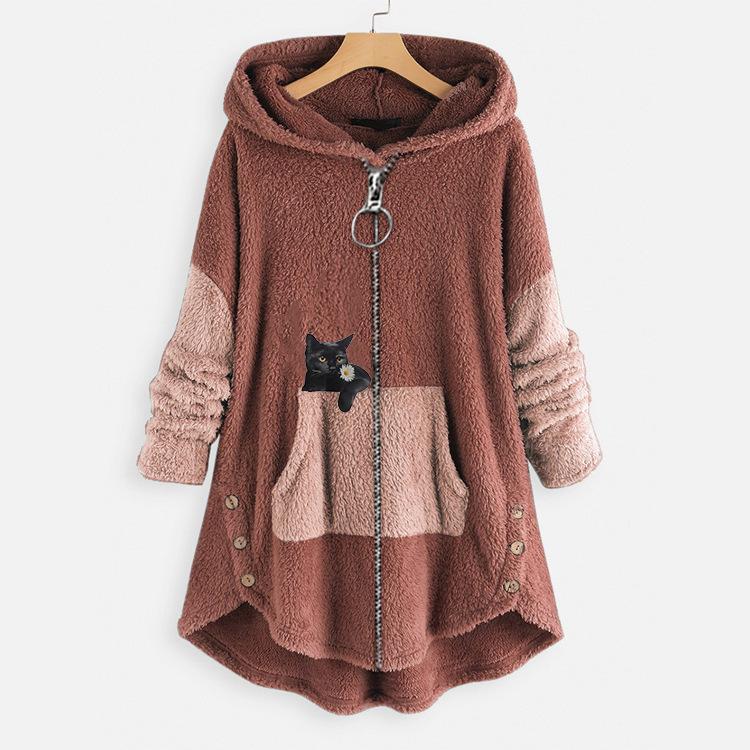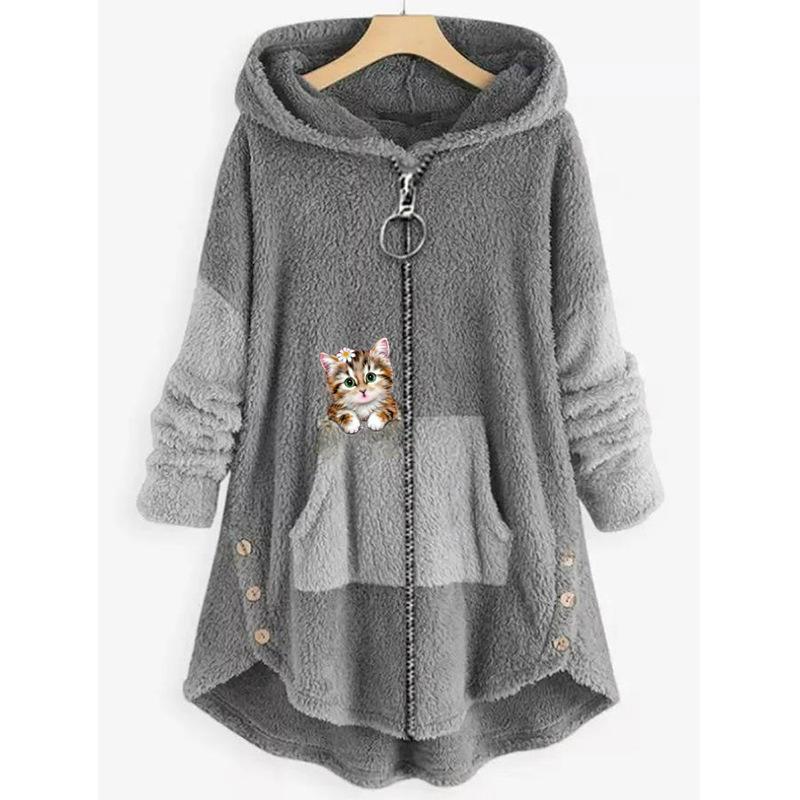 2024 유럽과 미국의 스트리트 패션 지퍼 여성용 스웨트 셔츠 캐주얼 루즈 다용도 지퍼 따뜻한 중간 길이 여성용 자켓스토어 가기