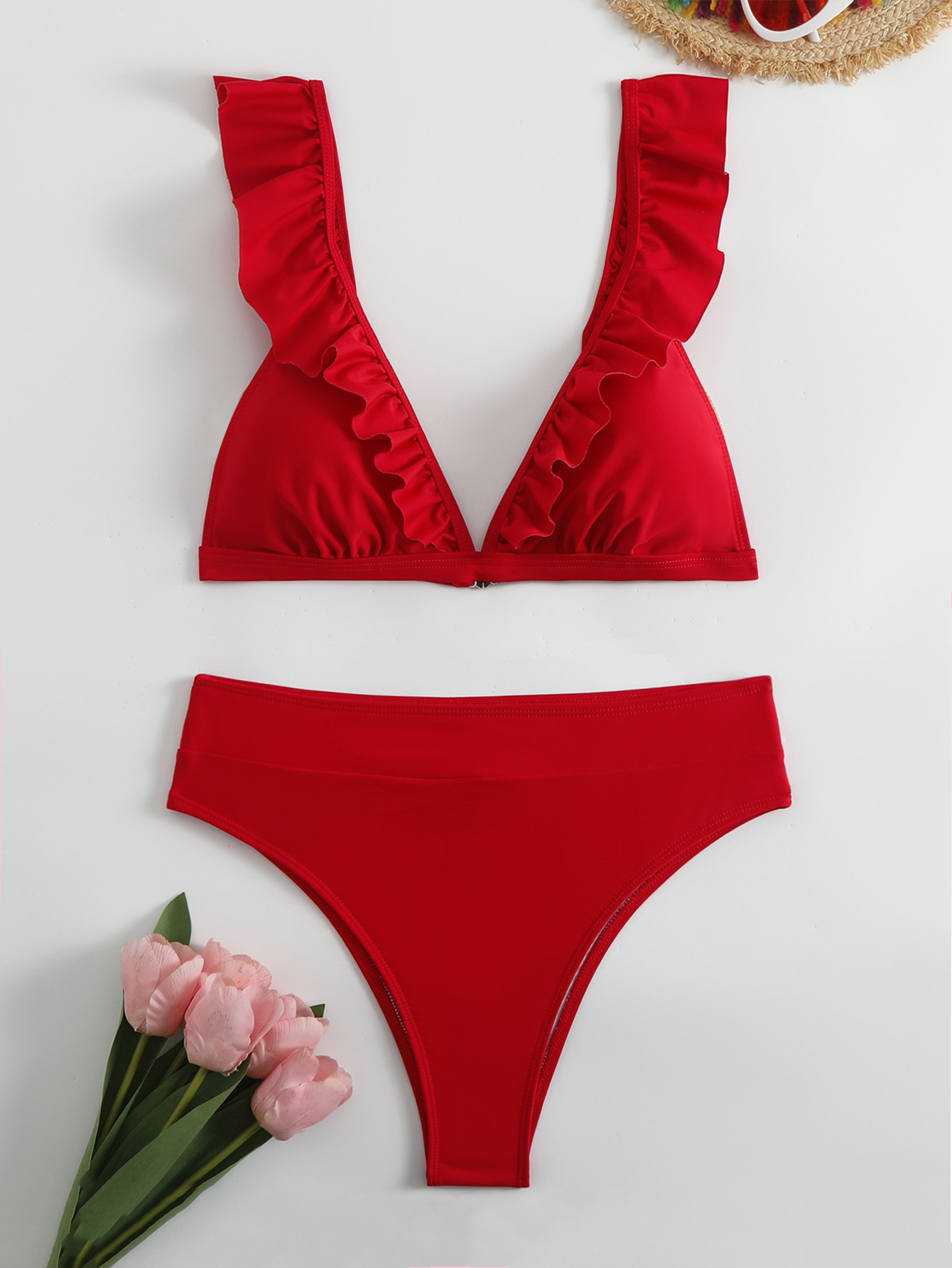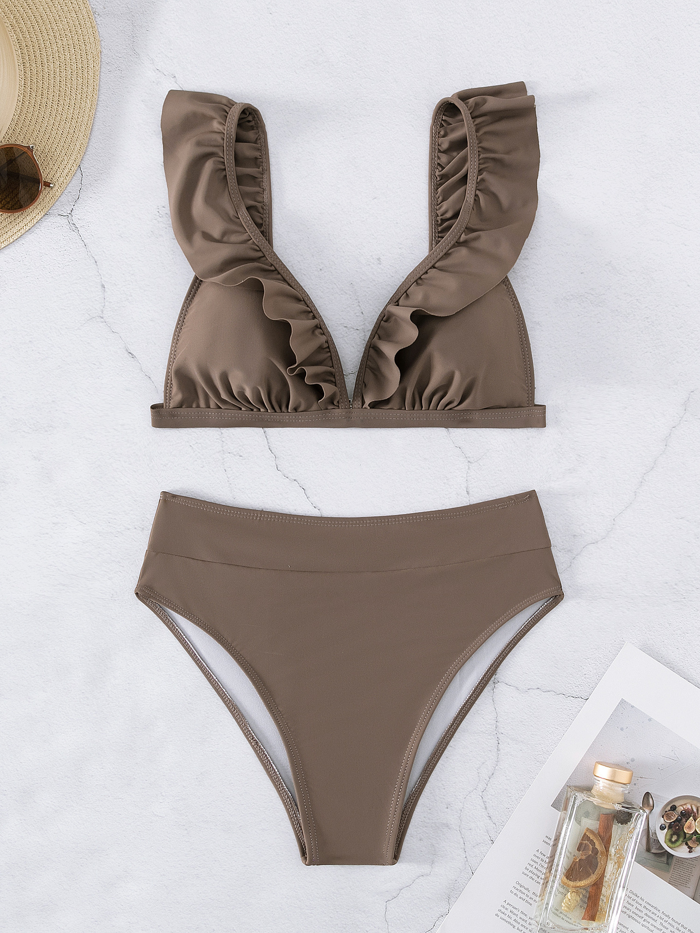 AliExpress 새로운 유럽 및 미국 분할 단색 BIKINI 수영복 여성 섹시한 주름 멀티 컬러 수영복