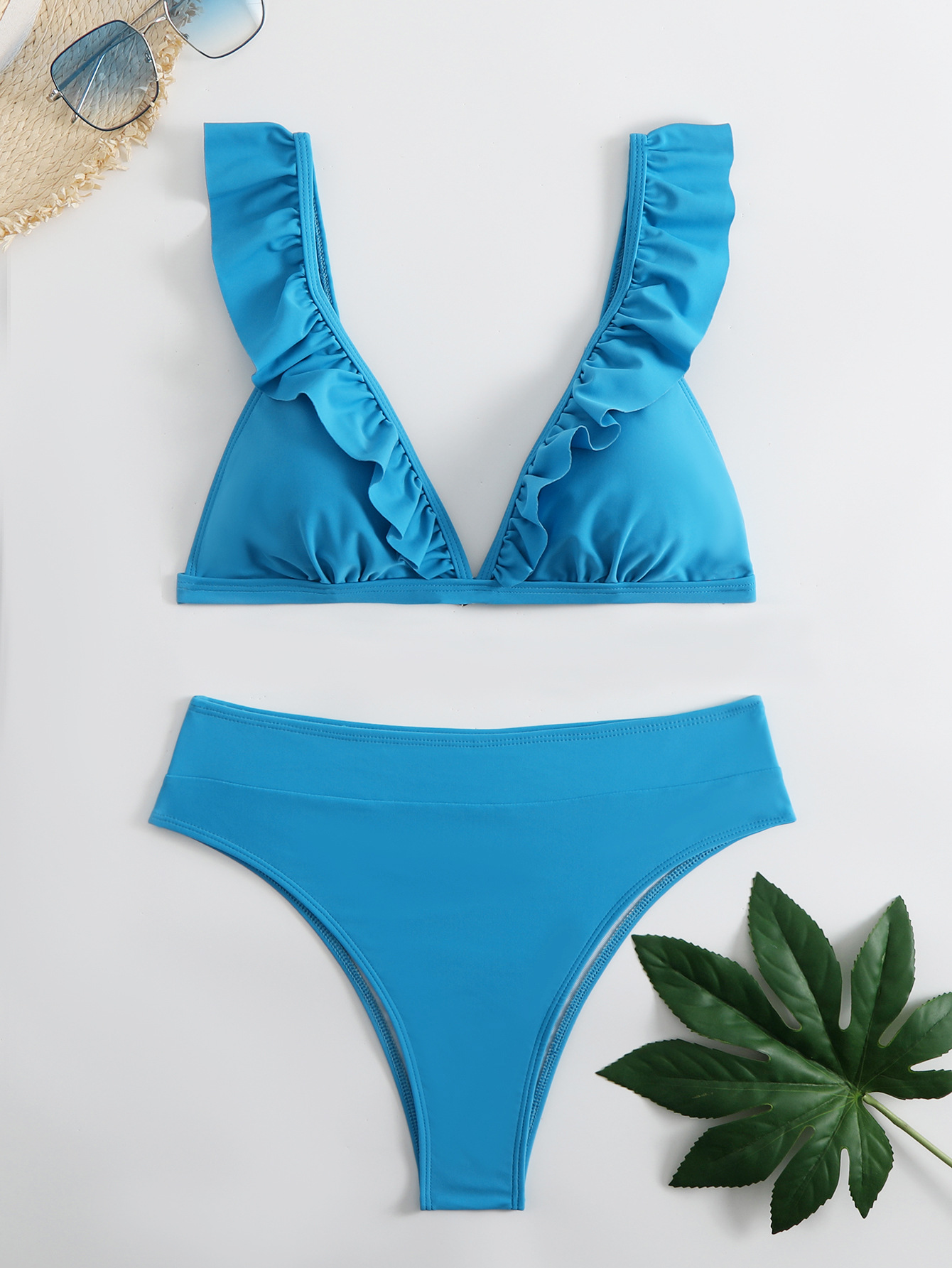 AliExpress 새로운 유럽 및 미국 분할 단색 BIKINI 수영복 여성 섹시한 주름 멀티 컬러 수영복스토어 가기