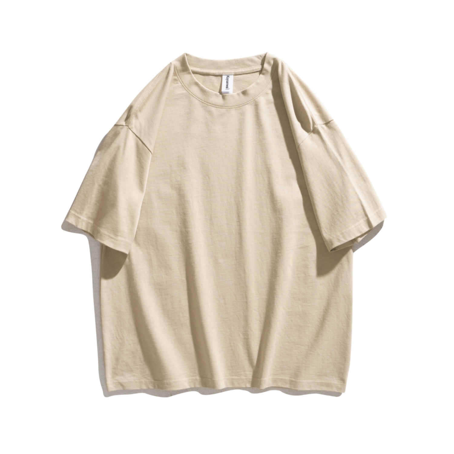 AG260g 전국 패션 대형 버전 오프 숄더 티셔츠 두꺼운 루즈 남성 카키 아메리칸 레트로 헤비급 반팔 맞춤형 로고스토어 가기