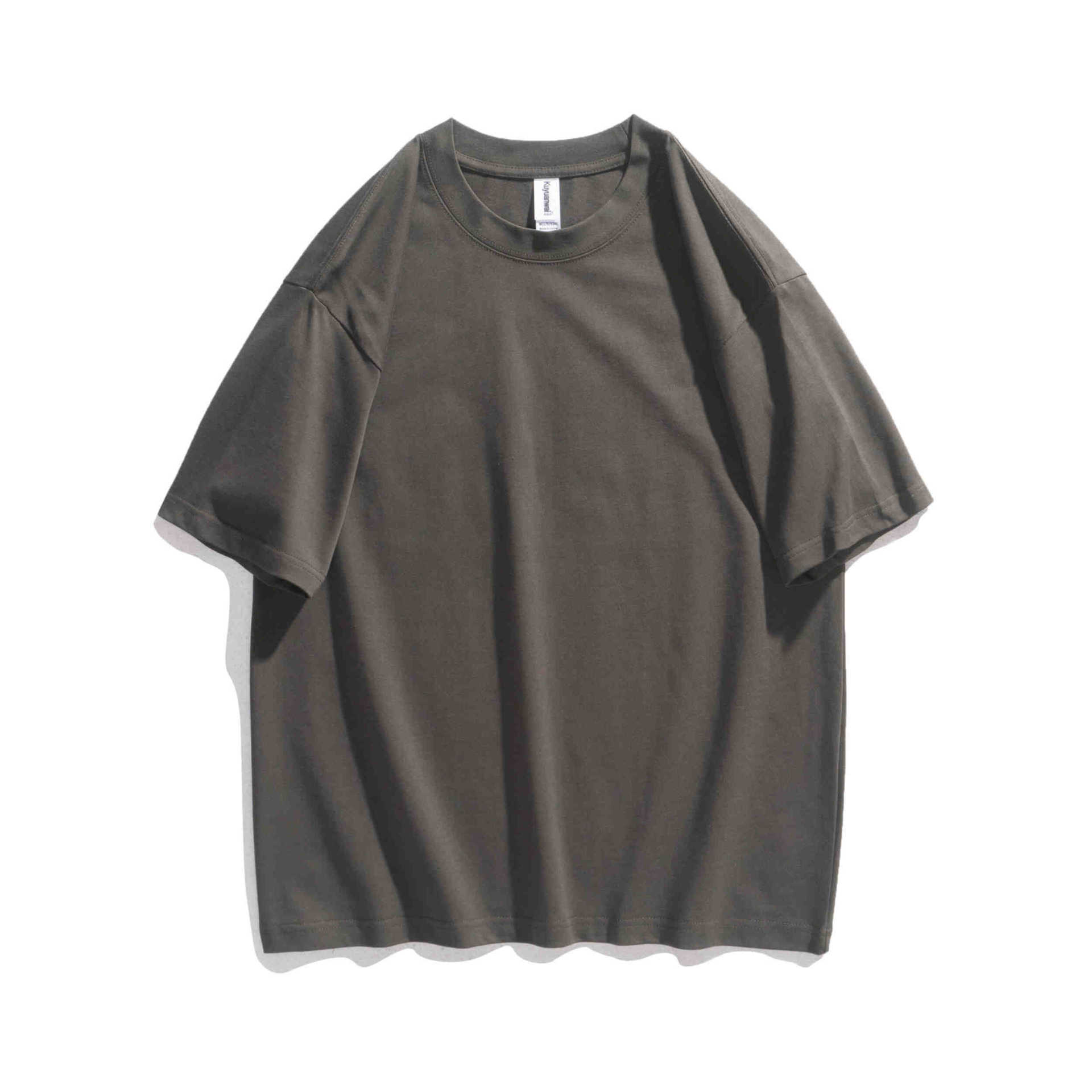 AG260g 전국 패션 대형 버전 오프 숄더 티셔츠 두꺼운 루즈 남성 카키 아메리칸 레트로 헤비급 반팔 맞춤형 로고