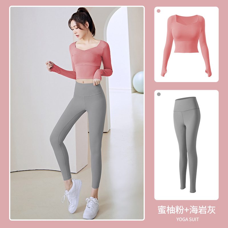 Juyitang 새로운 여성 러닝 트레이닝 알몸 타이트 피트니스 긴 소매 바지 요가 의류 세트
