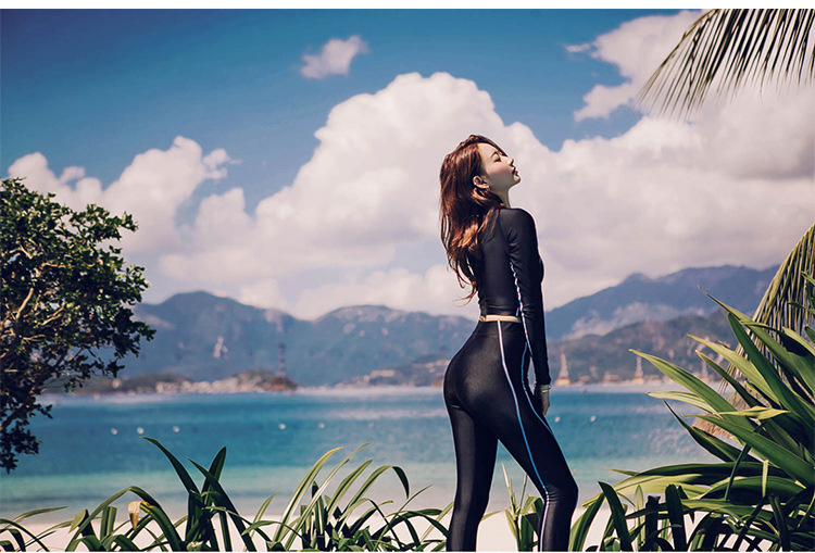 인터넷 연예인 한국식 서핑 세트 블랙 자외선 차단제 긴 소매 바지 수영복 분할 여성 슬리밍 세트 공장 스트레이트 배치 수영복스토어 가기