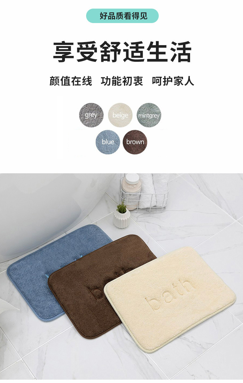 새로운 핫 세일 모조 캐시미어 메모리 폼 자수 바닥 매트 욕실 흡수성 미끄럼 방지 발 매트 욕실 스폰지 카펫스토어 가기