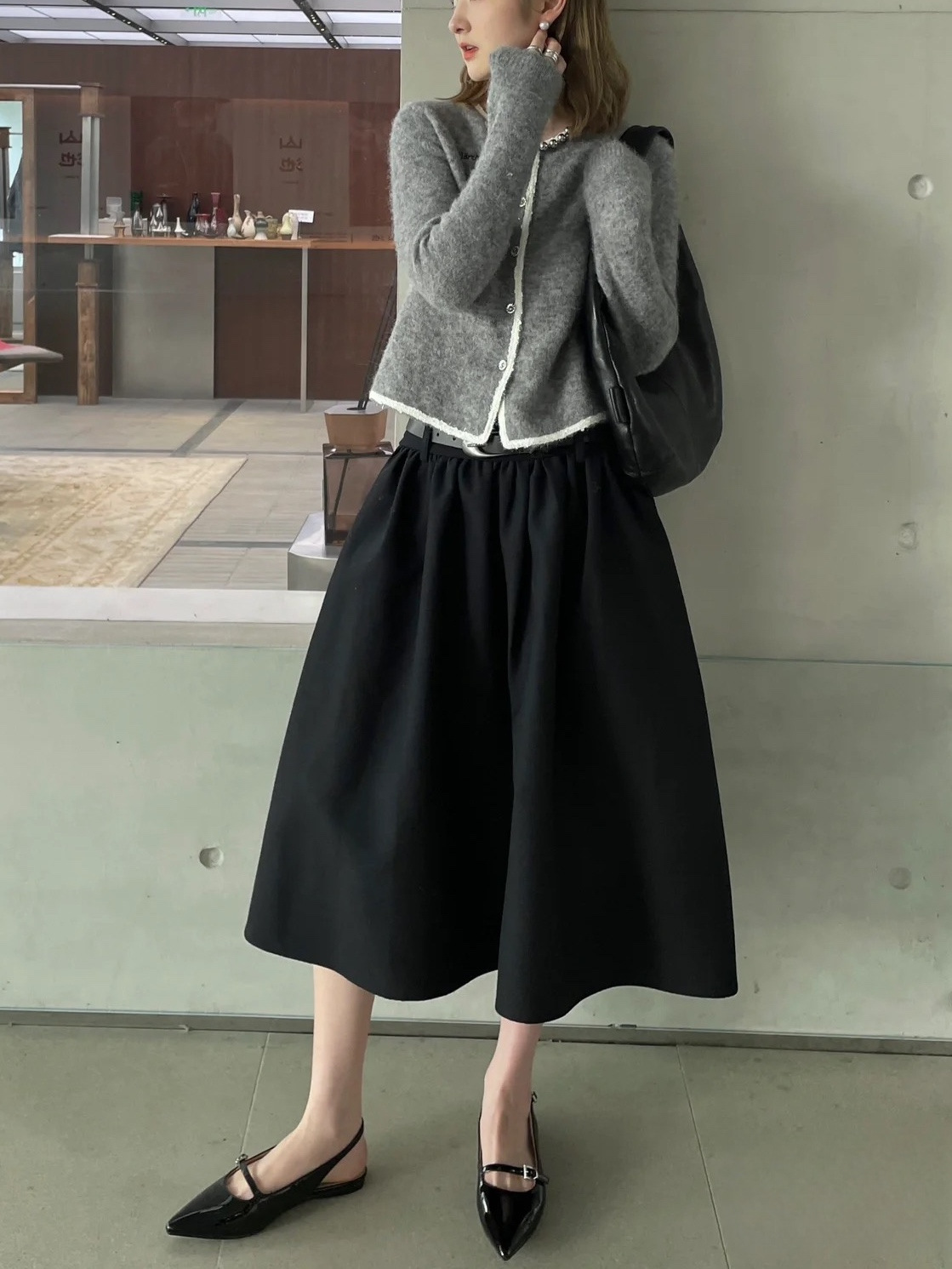 봄과 가을 다크 디자인 니치 로우웨이스트 신축성 있는 블랙 슬리밍 실루엣 투투 스커트 여성용 하이엔드 스커트