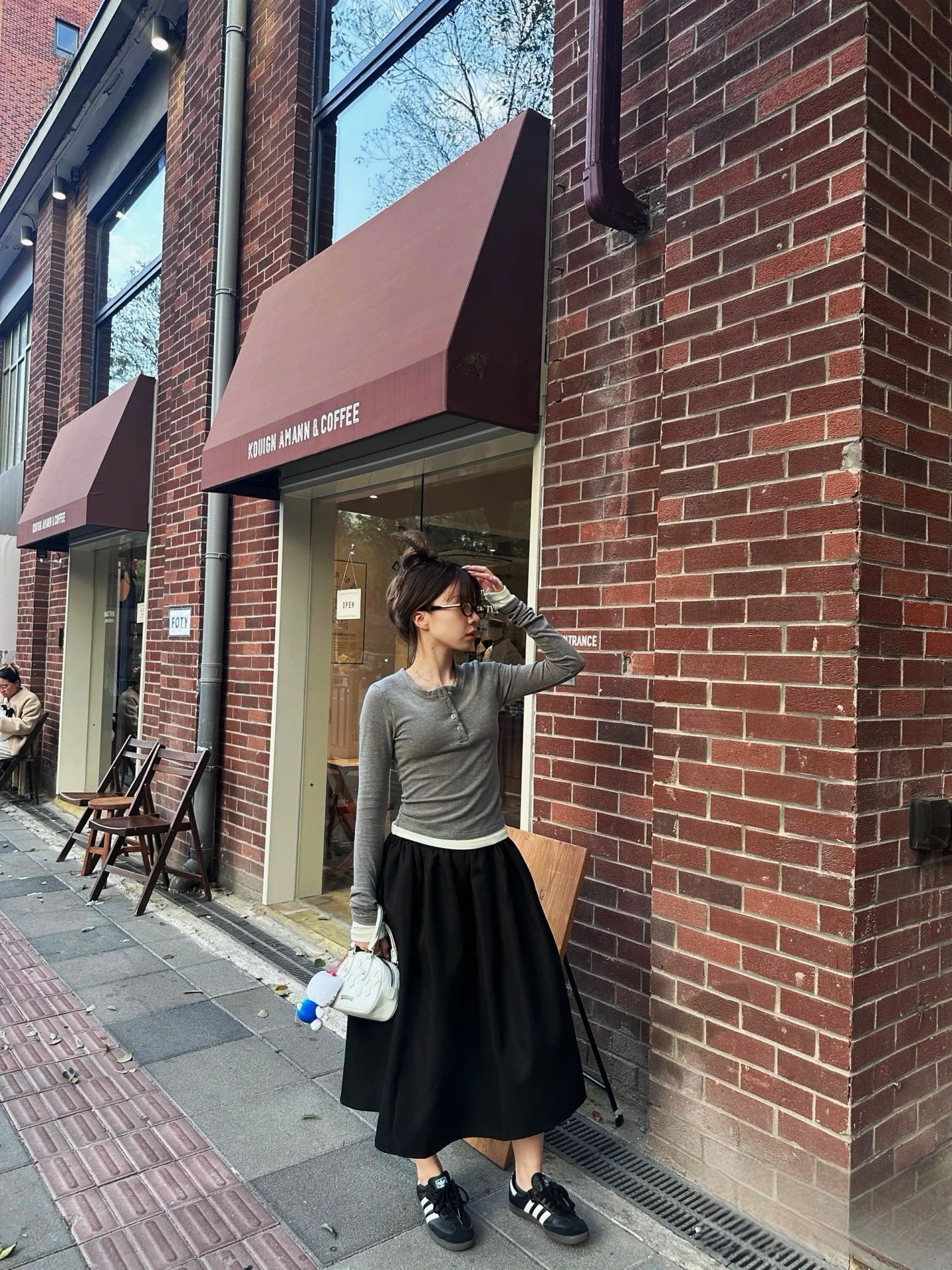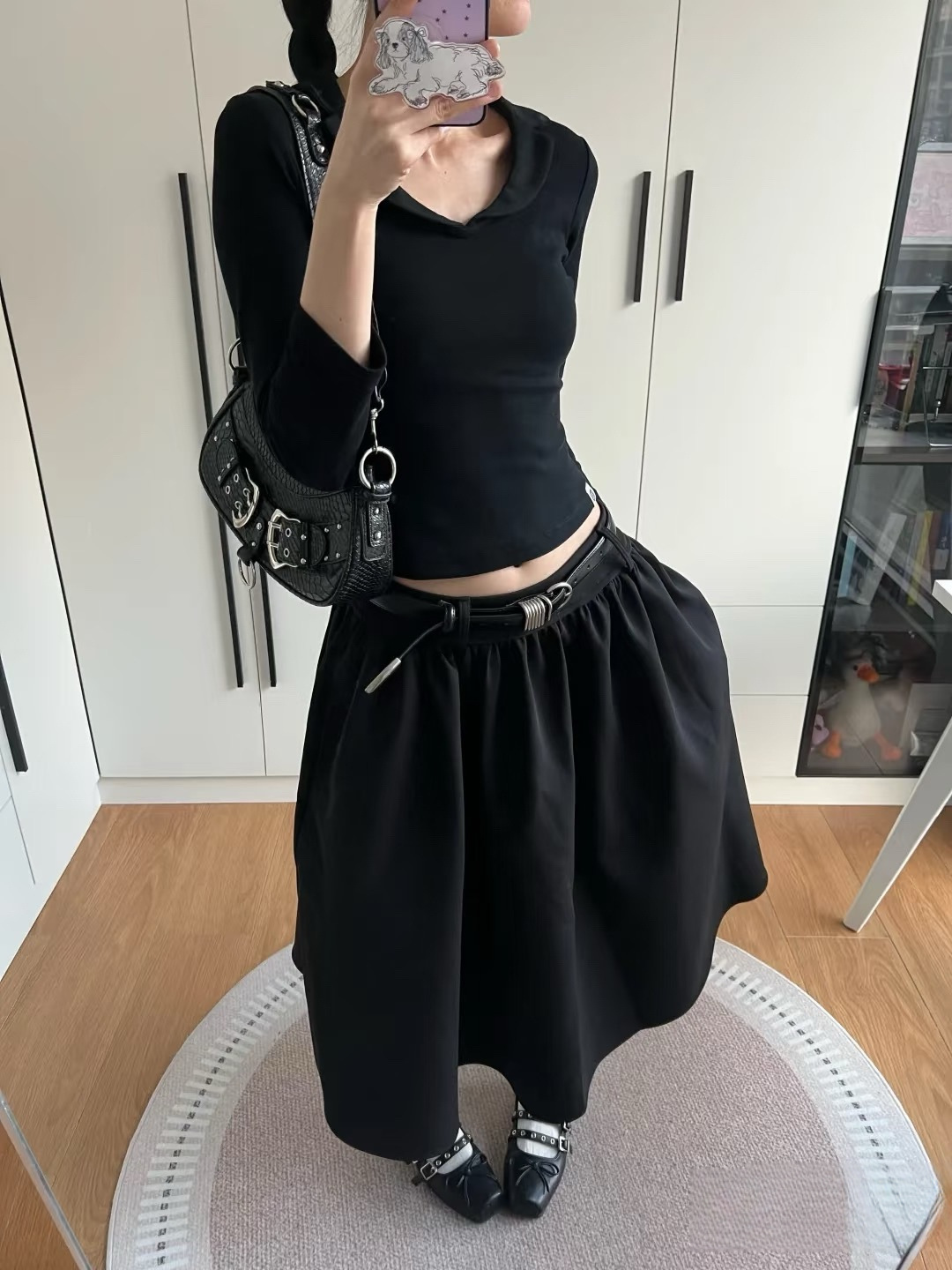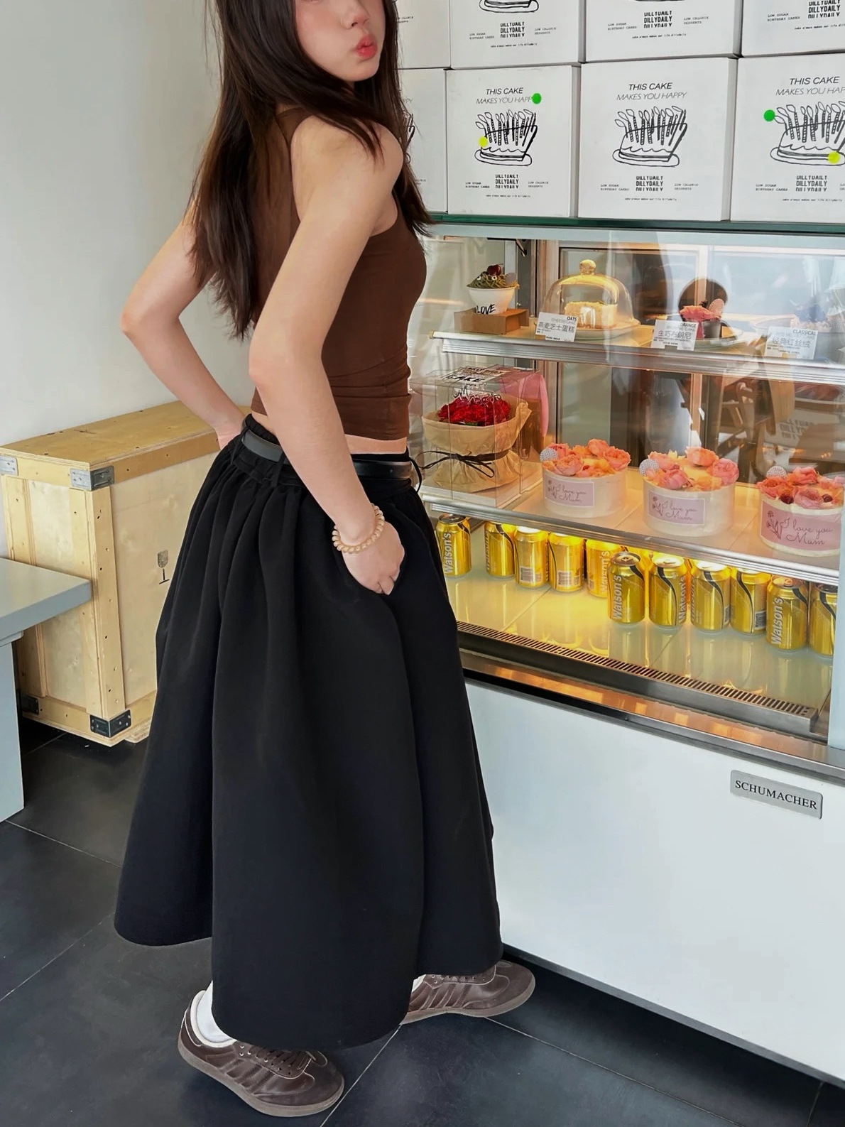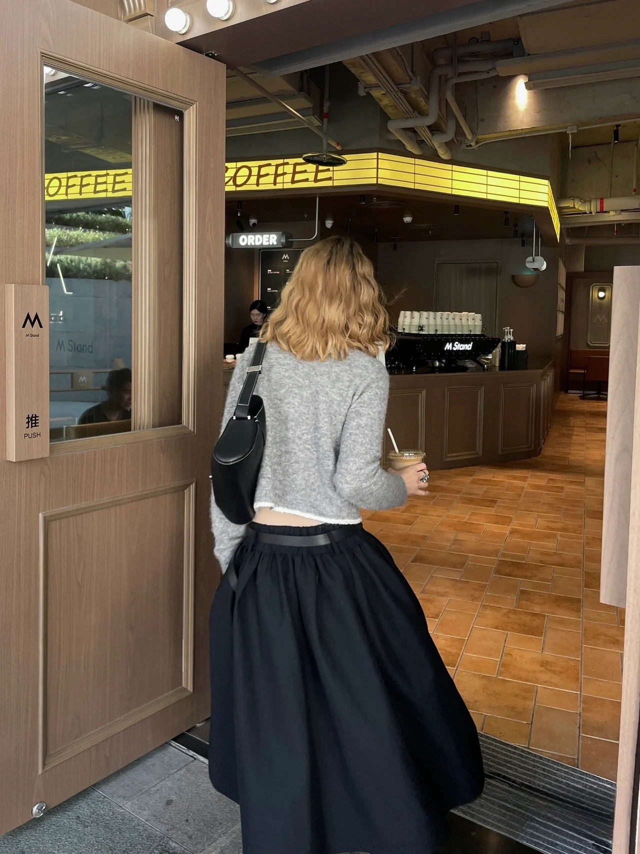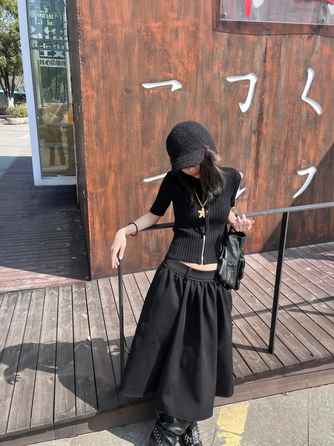 봄과 가을 다크 디자인 니치 로우웨이스트 신축성 있는 블랙 슬리밍 실루엣 투투 스커트 여성용 하이엔드 스커트스토어 가기