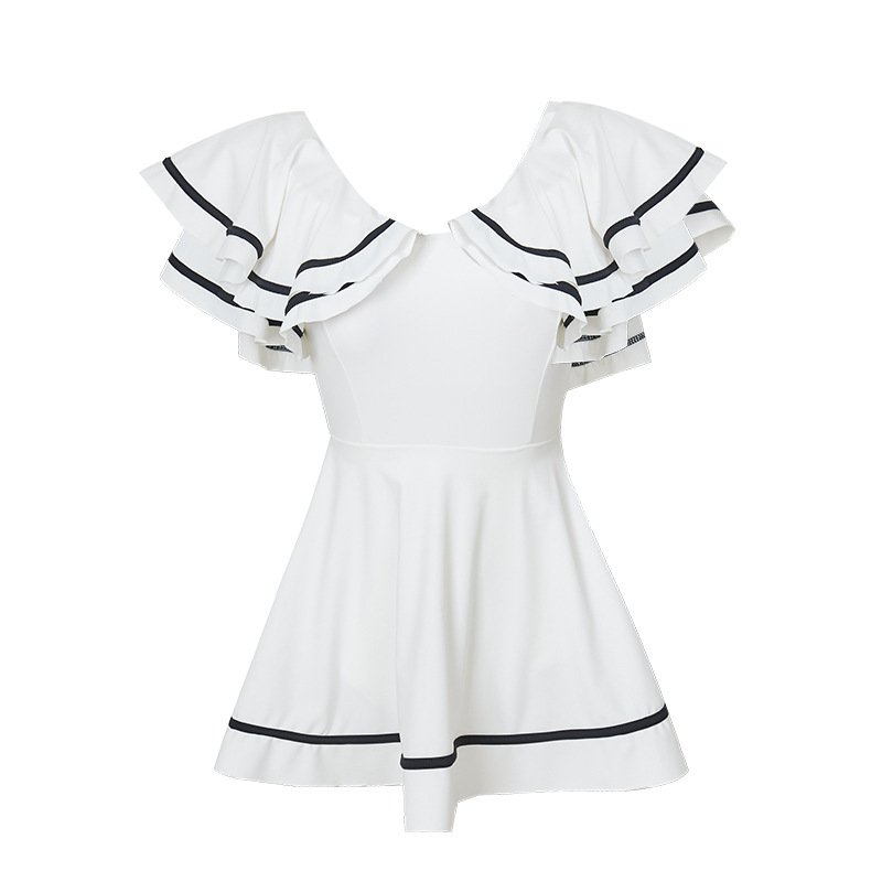 수영복 여성용 스커트 원피스 2023 새로운 배꼽 덮힌 슬리밍 연잎 반팔 온천 보수 요정 수영복스토어 가기