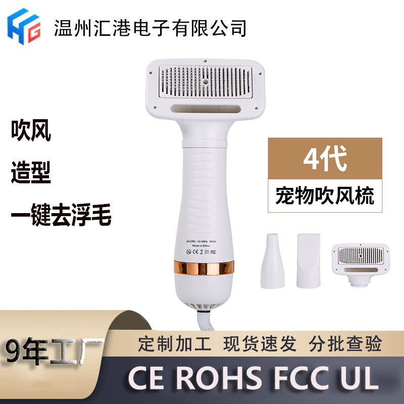 2代3代功能: 按摩针梳 三档调节吹风造型 梳尽浮毛 头部按键一键除毛。