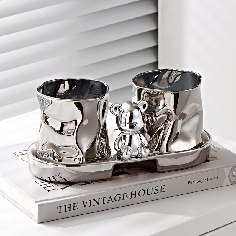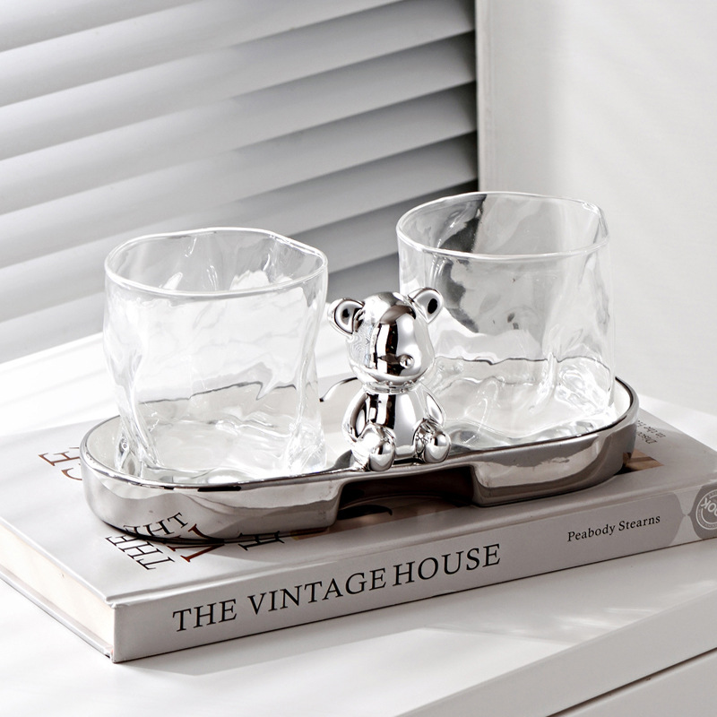 • 큰 머리 곰 구강 세척제 컵 3 종 세트 [실버 컵 + 트레이]]