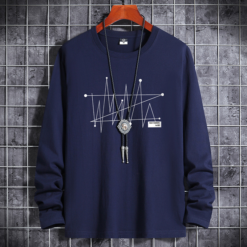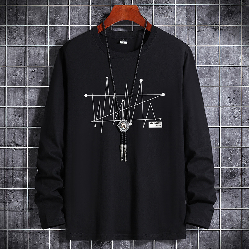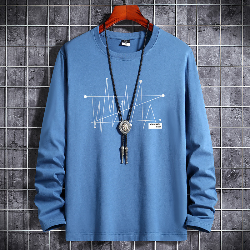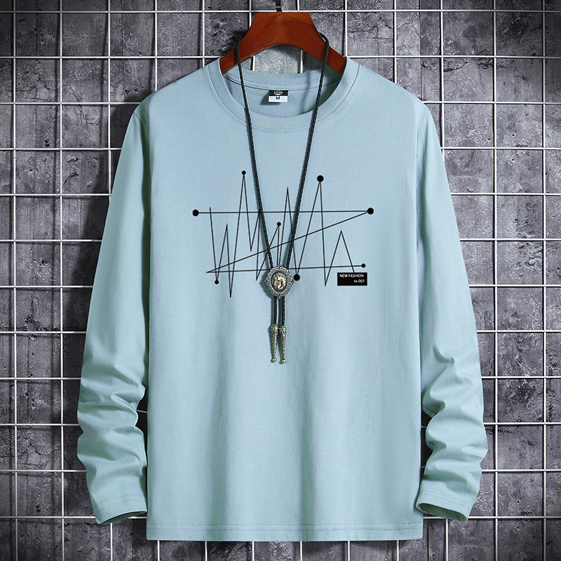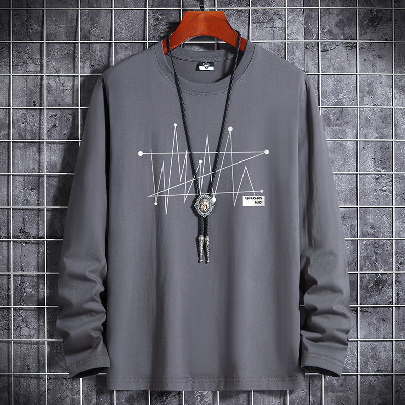 남성용 긴팔 티셔츠 남성용 여름 트렌디 브랜드 프린트 라운드 넥 베이스 셔츠 청소년 탑 의류 티셔츠 봄과 가을 순면스토어 가기