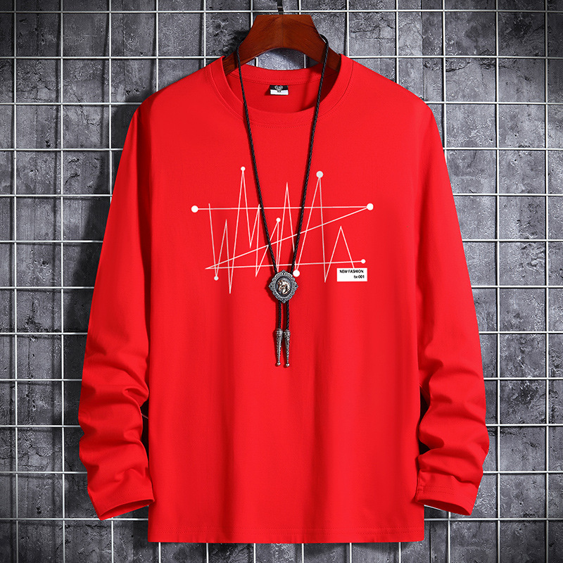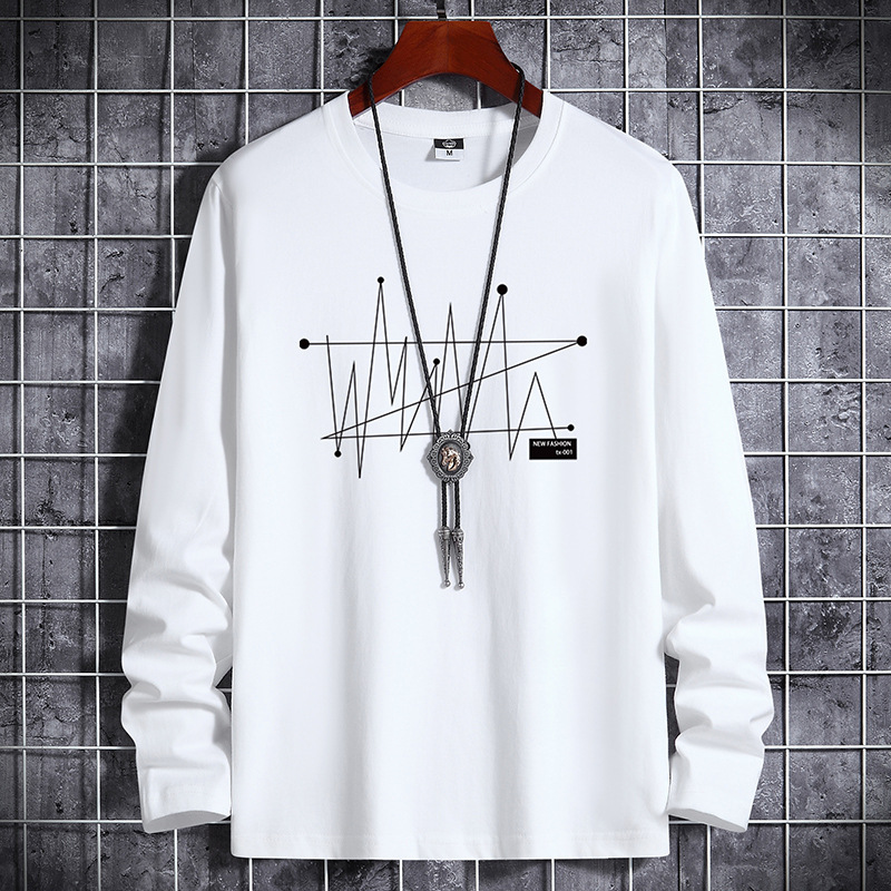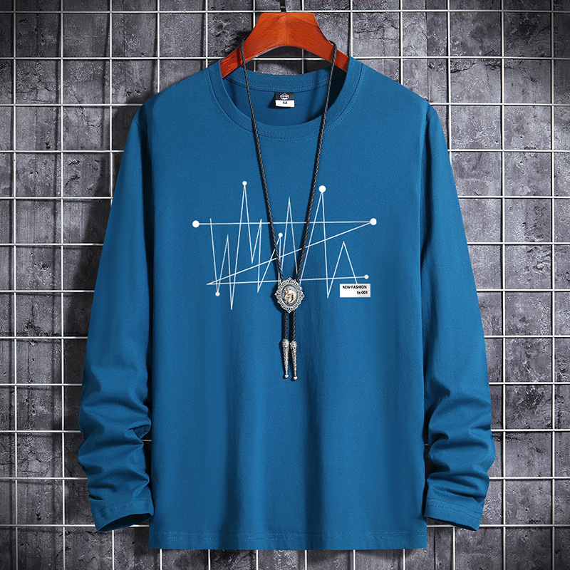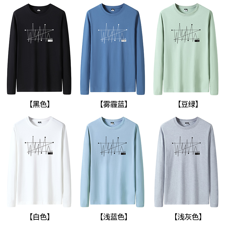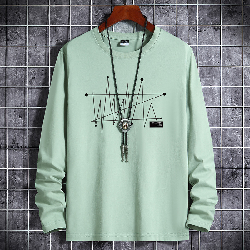 남성용 긴팔 티셔츠 남성용 여름 트렌디 브랜드 프린트 라운드 넥 베이스 셔츠 청소년 탑 의류 티셔츠 봄과 가을 순면스토어 가기