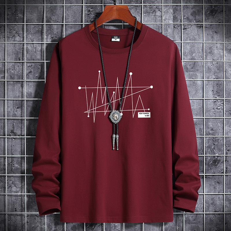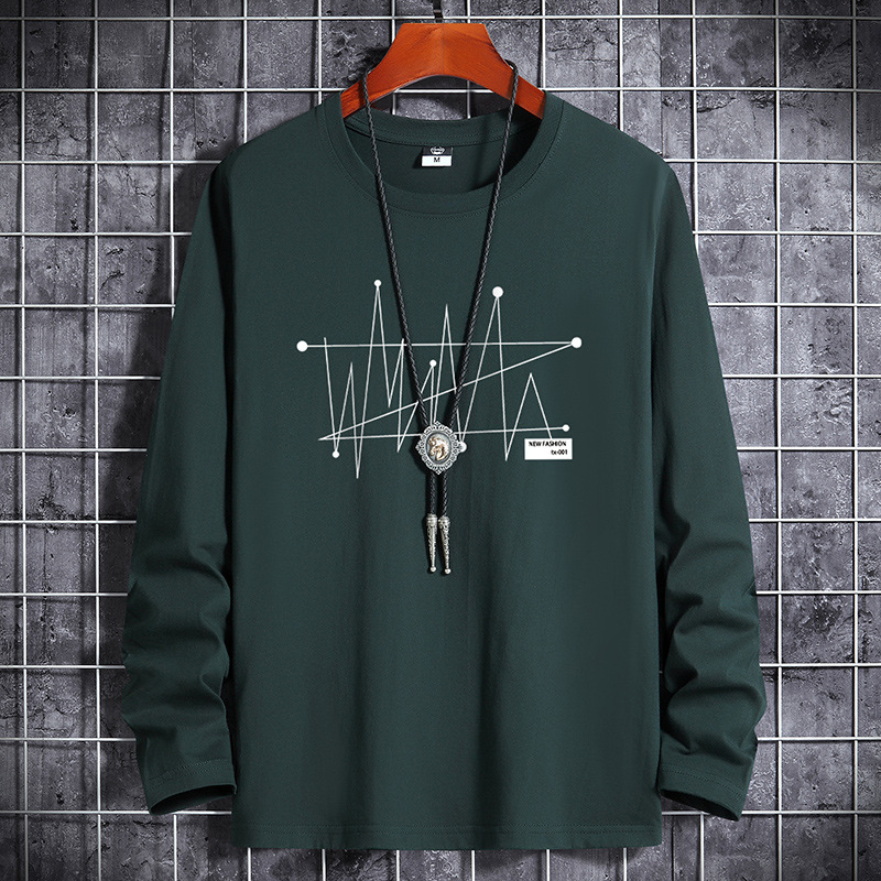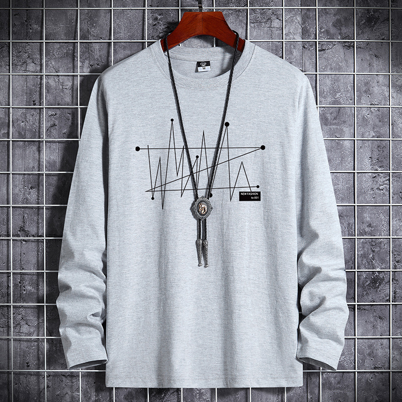 남성용 긴팔 티셔츠 남성용 여름 트렌디 브랜드 프린트 라운드 넥 베이스 셔츠 청소년 탑 의류 티셔츠 봄과 가을 순면