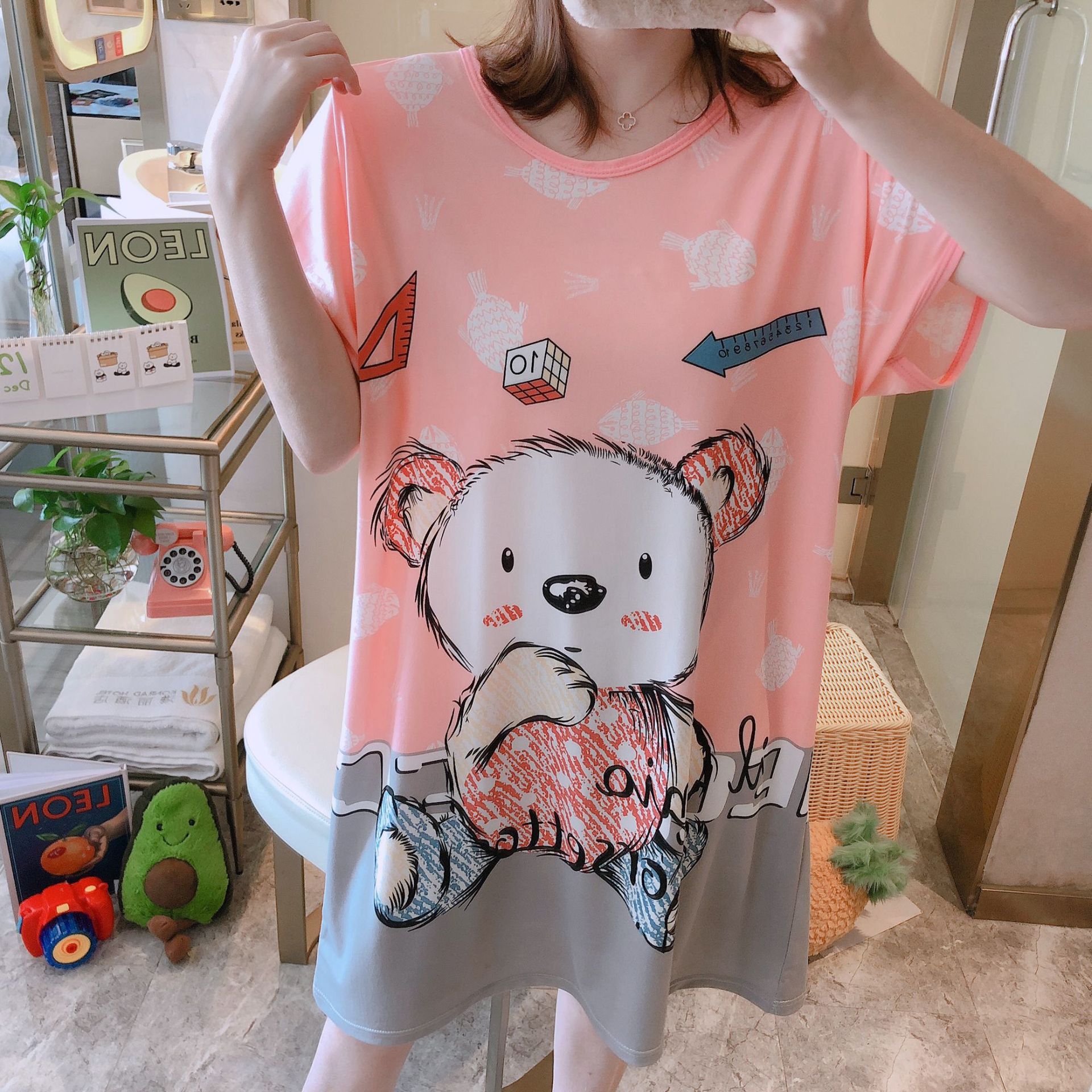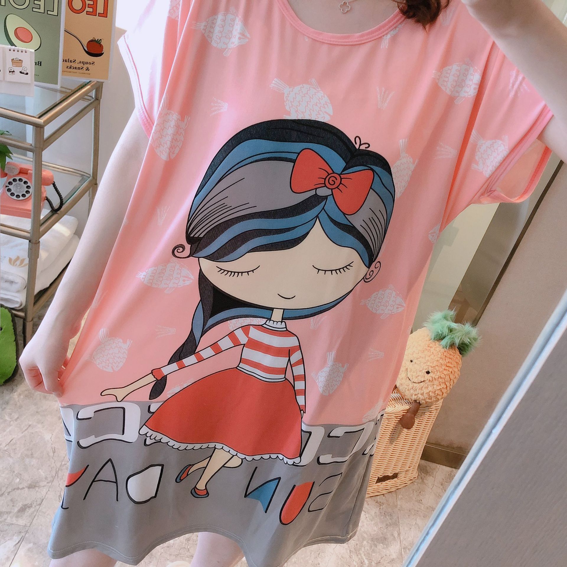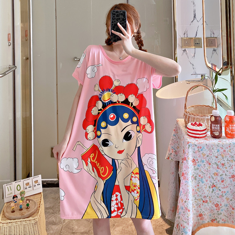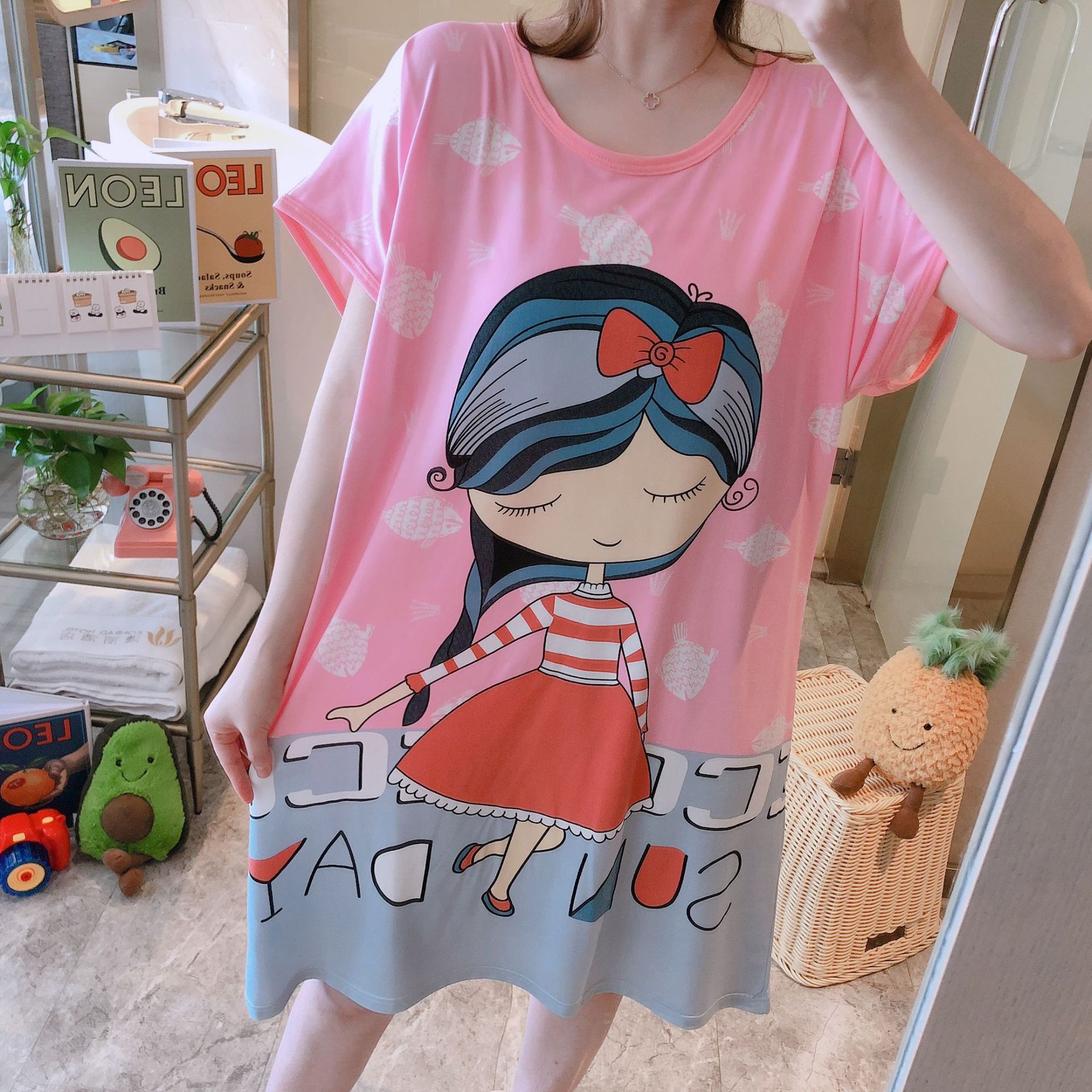 다양한 패턴 크로스 보더 여름 새로운 플러스 뚱뚱한 느슨한 반팔 우유 실크 만화 원피스 잠옷 제조 업체 도매스토어 가기