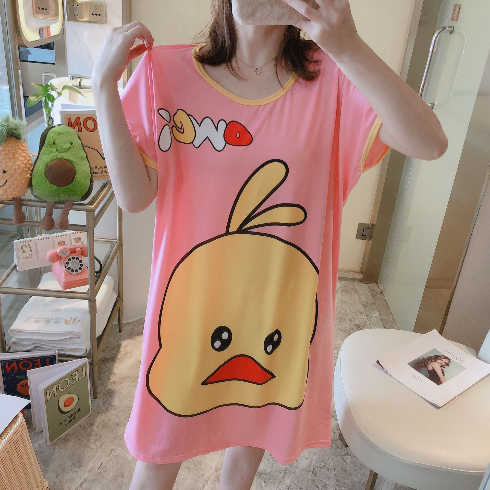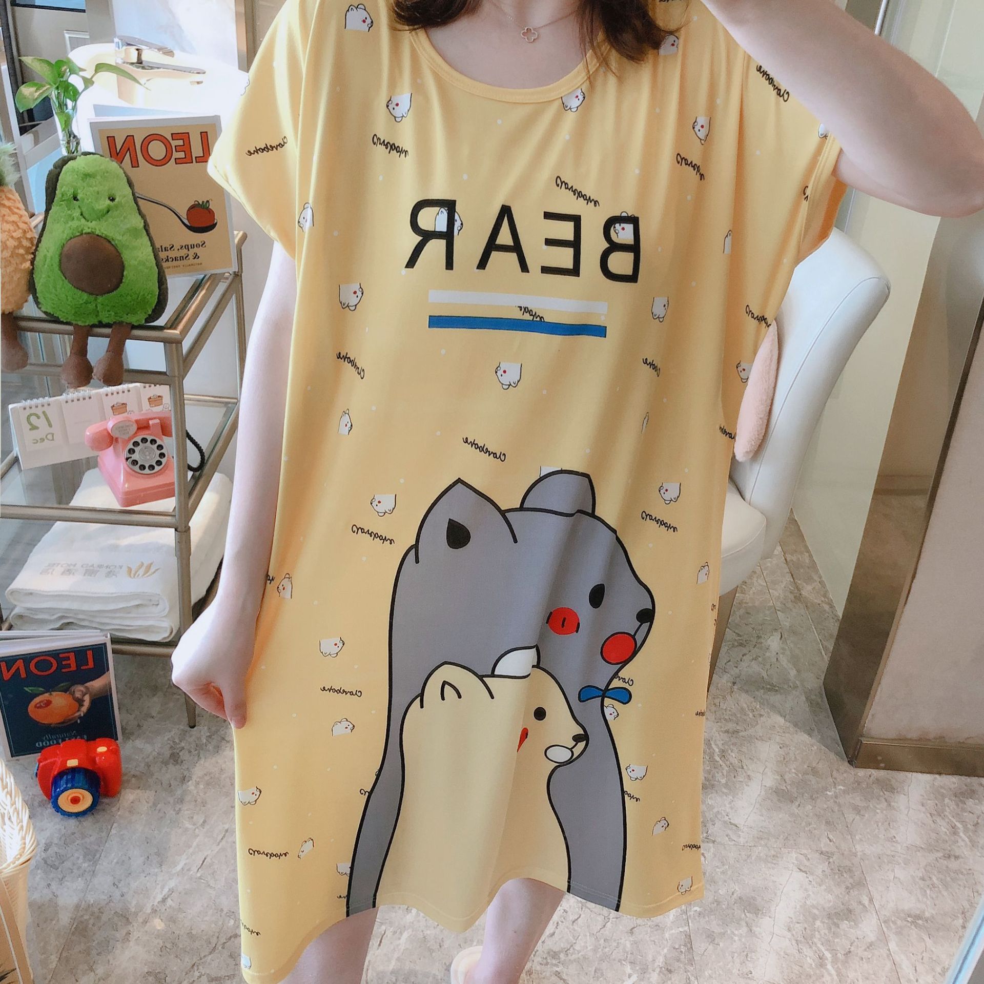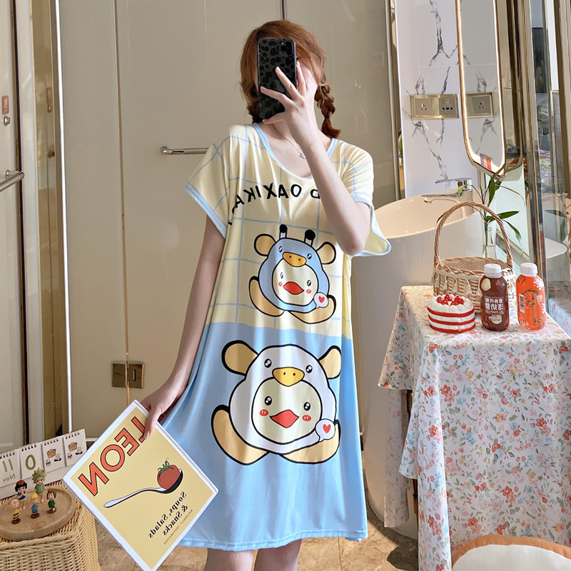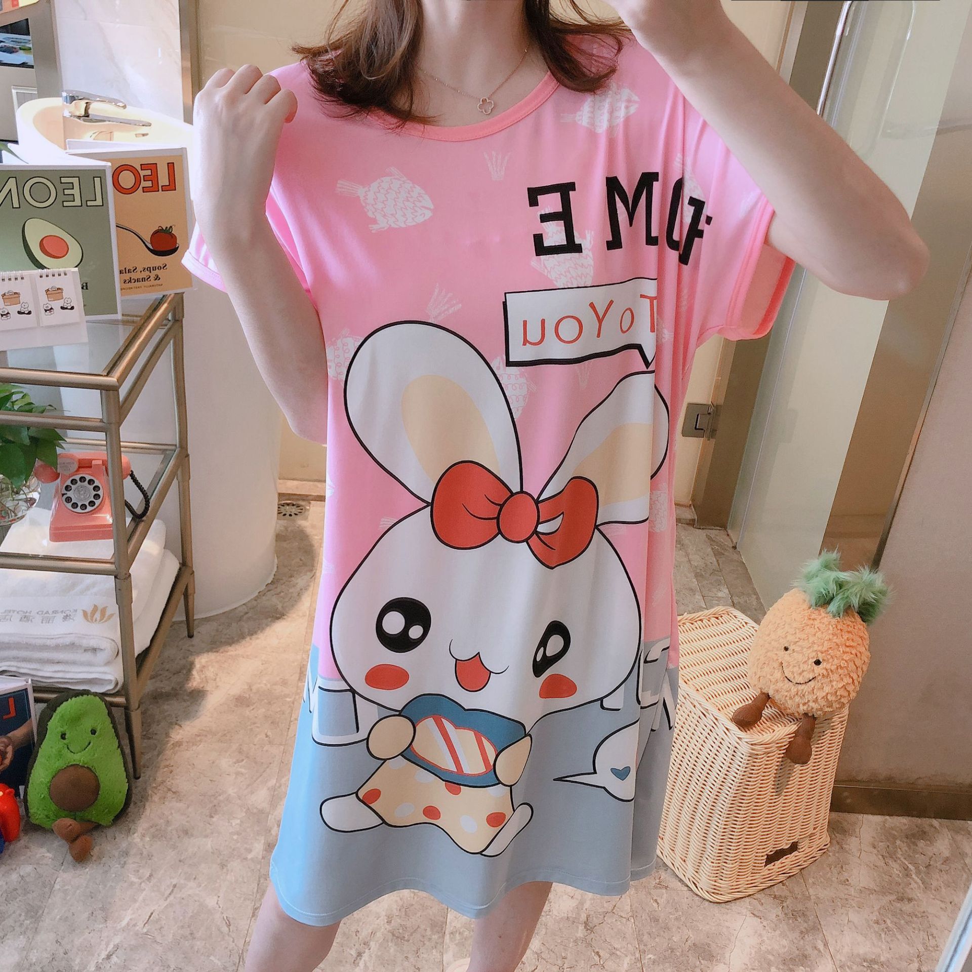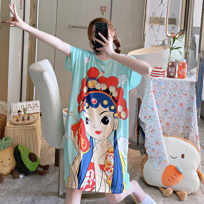 다양한 패턴 크로스 보더 여름 새로운 플러스 뚱뚱한 느슨한 반팔 우유 실크 만화 원피스 잠옷 제조 업체 도매스토어 가기