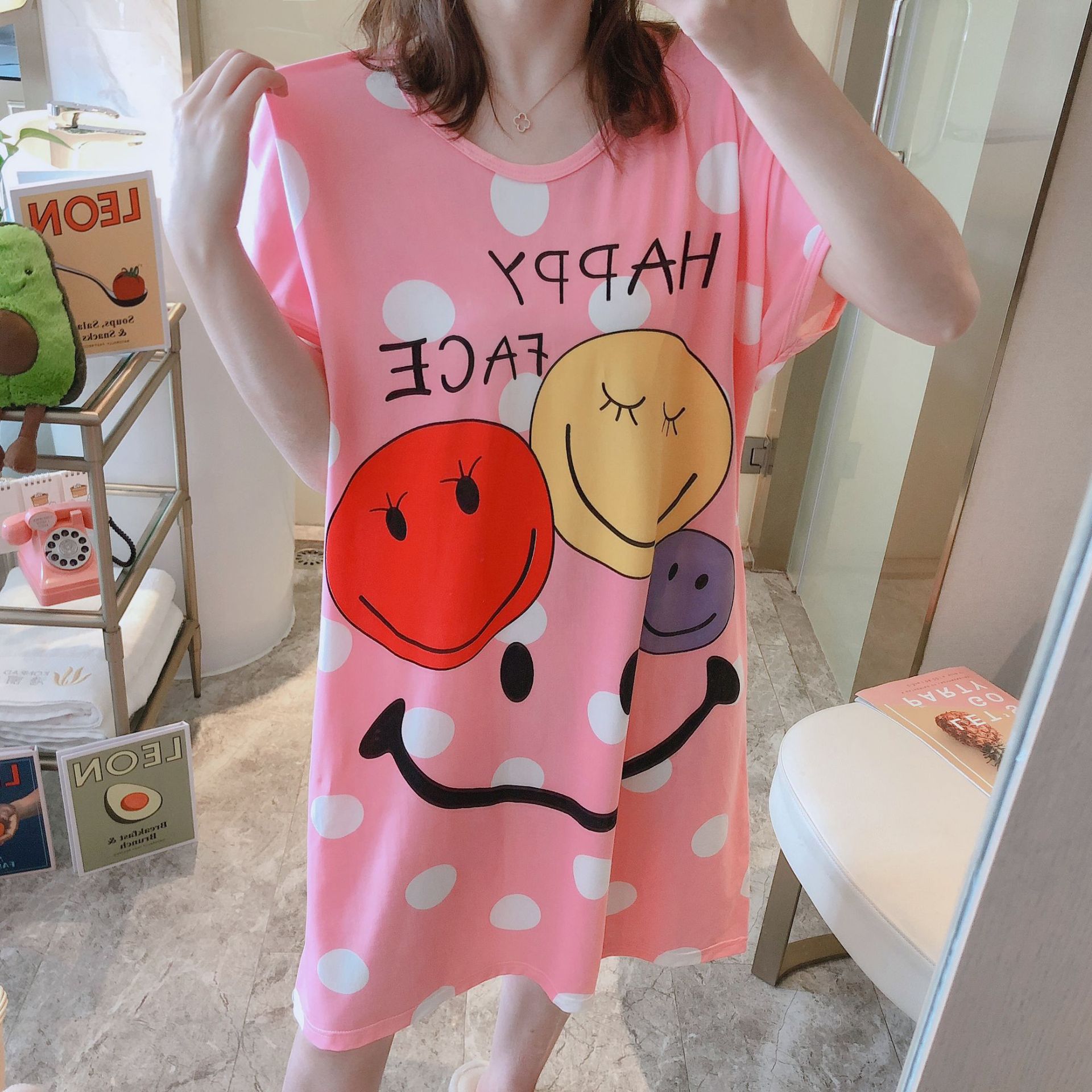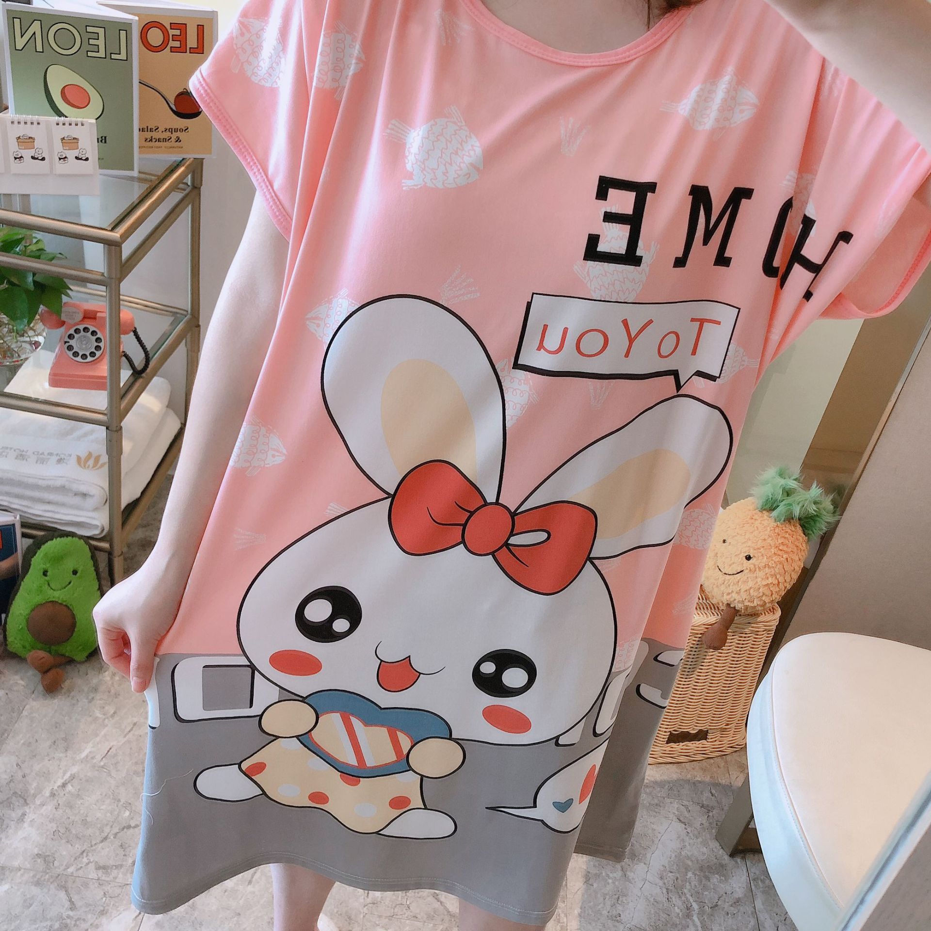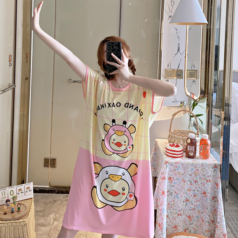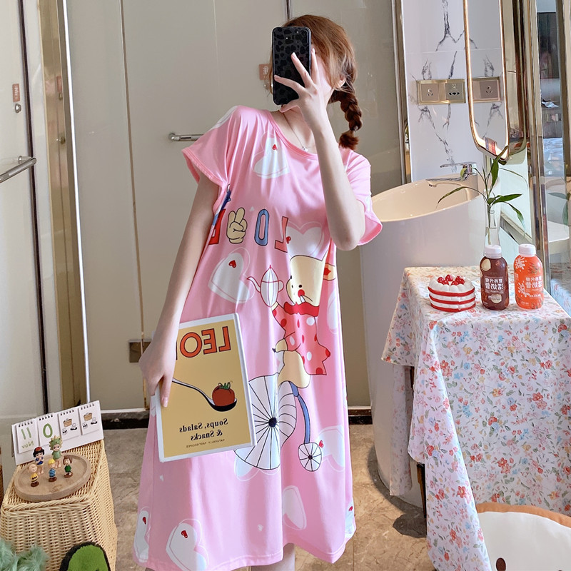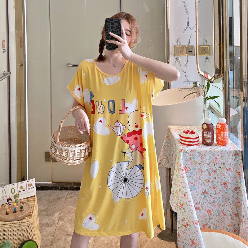 다양한 패턴 크로스 보더 여름 새로운 플러스 뚱뚱한 느슨한 반팔 우유 실크 만화 원피스 잠옷 제조 업체 도매스토어 가기