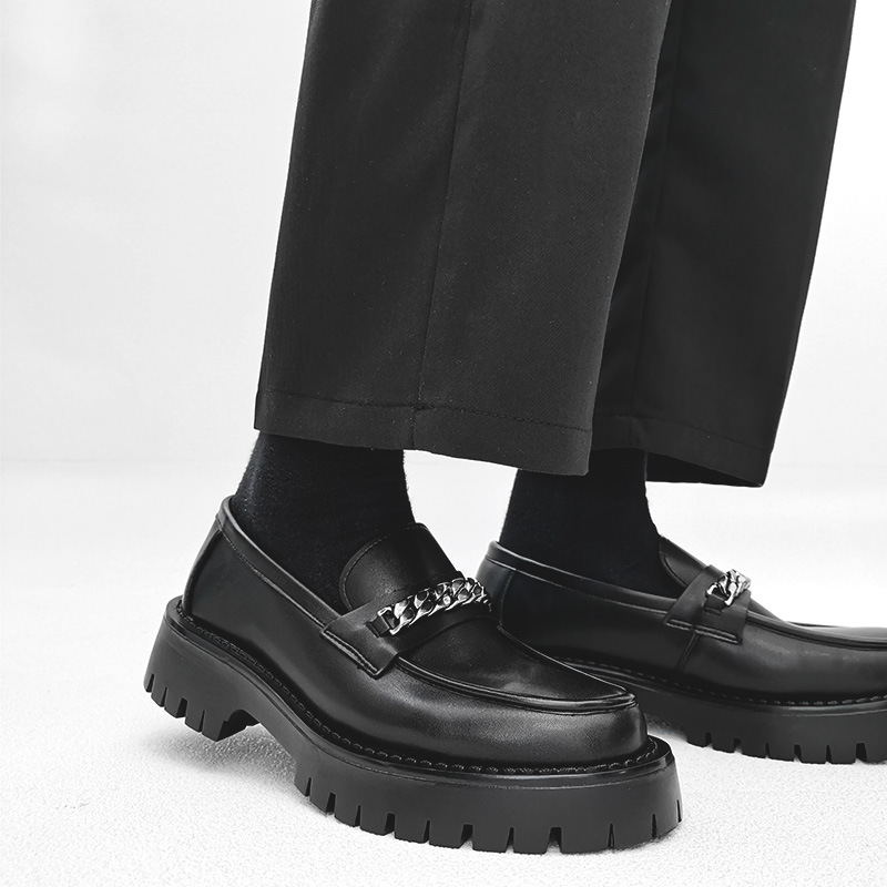 한국 스타일 두꺼운 단독 다리 로퍼 영국 스타일 정품 가죽 복고풍 작은 가죽 신발 비즈니스 원피스 캐주얼 유행 남성 신발스토어 가기