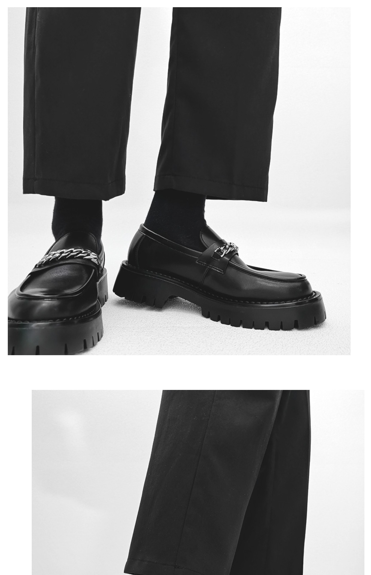 한국 스타일 두꺼운 단독 다리 로퍼 영국 스타일 정품 가죽 복고풍 작은 가죽 신발 비즈니스 원피스 캐주얼 유행 남성 신발