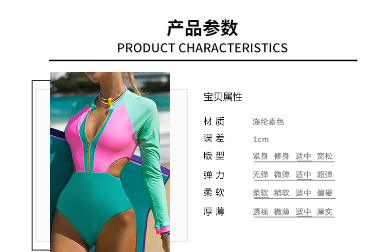 2025 새로운 유럽과 미국의 패션 컬러 매칭 보수적 인 살을 덮고 슬리밍 앞 지퍼 원피스 여성용 꽉 긴팔 서핑 슈트스토어 가기