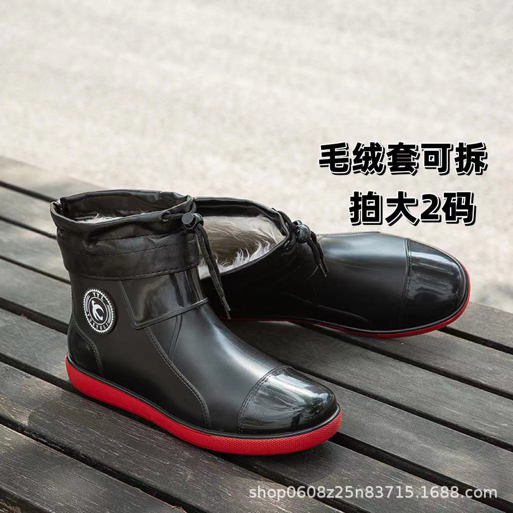 도매 슈퍼 플러스 사이즈 35-49 방수 신발 남성과 여성 패션 짧은 튜브 마모 방지 초대형 레인 부츠 짧은 낮은 튜브 접착제