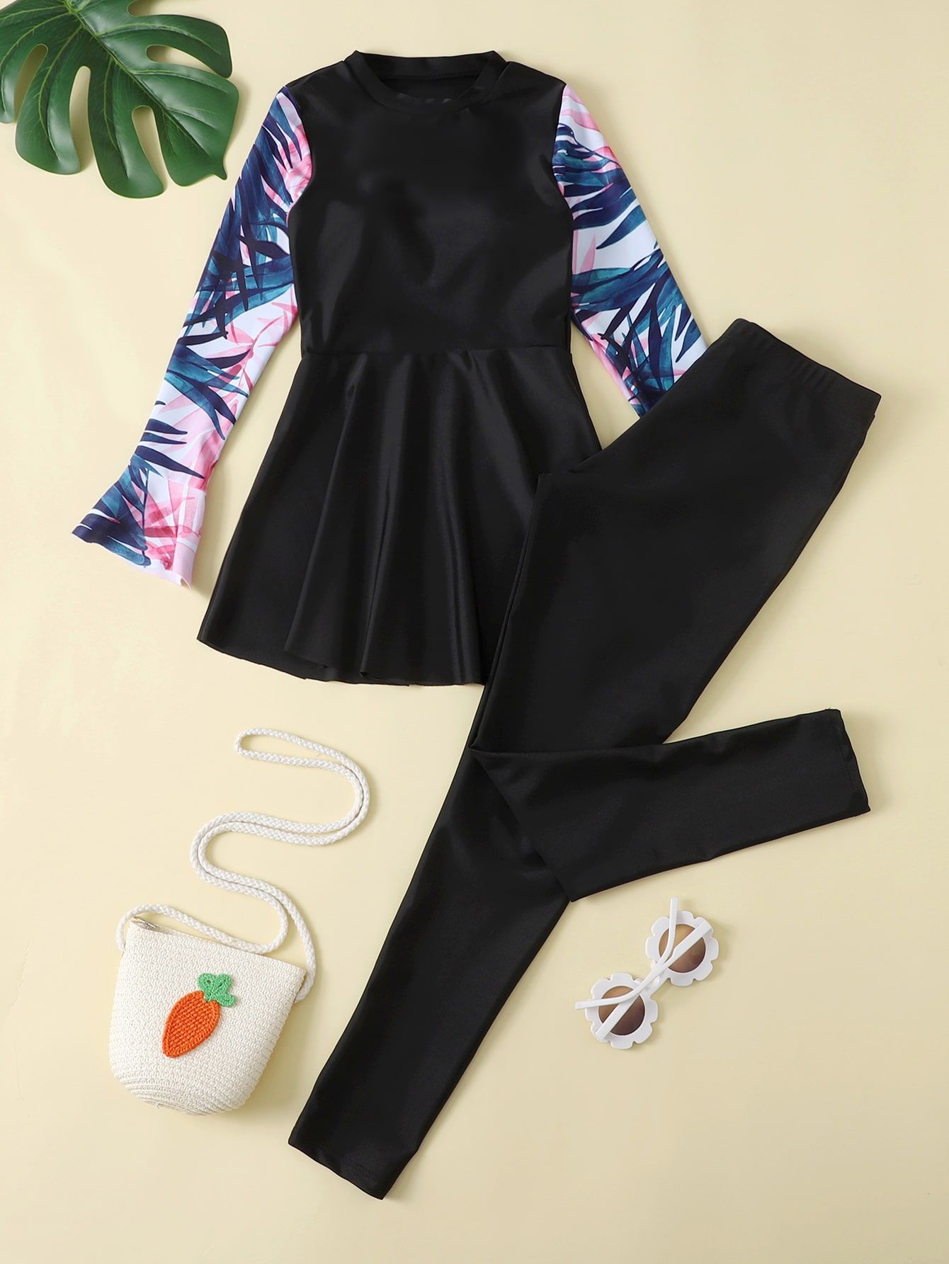 2023 새로운 아마존 유럽과 미국 섹시한 긴 소매 바지 큰 어린이 비키니 소녀 수영복 제조 업체 도매