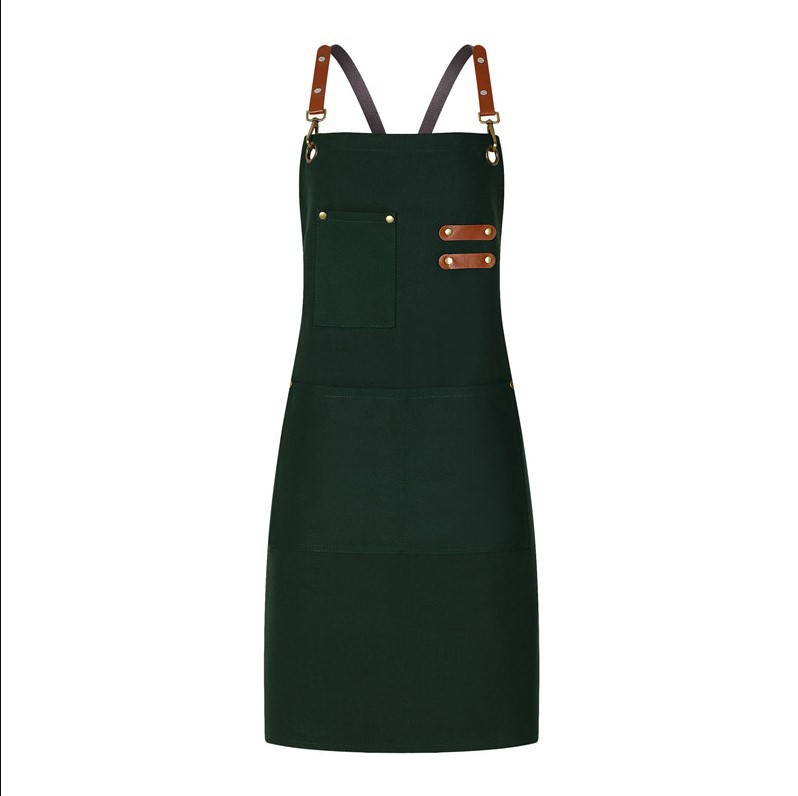 두꺼운 캔버스 앞치마 크로스 벨트 고급 앞치마 레스토랑 호텔 커피 숍 앞치마 인쇄 로고 대외 무역